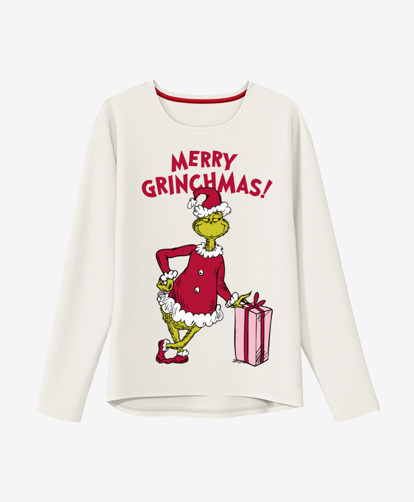 Lasciati avvolgere dal calore delle feste con questo pigiama rosso da donna a tema Grinch. Realizzato in 100% cotone, questo set include una maglia a maniche lunghe con la simpaticissima stampa del celebre personaggio e un pantalone con un allegro motivo natalizio. Ideale per le serate invernali e perfetto anche come idea regalo per chi ama rilassarsi, questo pigiama regalerà un riposo confortevole.