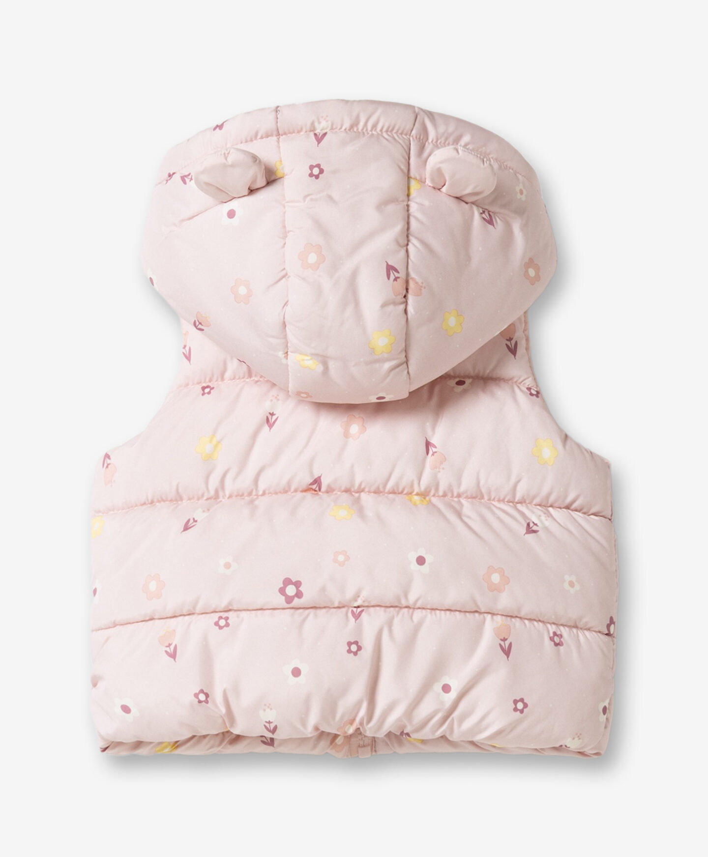 Porta un tocco di dolcezza nel guardaroba della tua piccola con questo piumino smanicato floreale rosa da neonata, perfetto per le giornate più fredde. Leggero e morbido, avvolge delicatamente la tua bimba e la protegge dal vento grazie al pratico cappuccio con orecchie, che aggiunge un dettaglio adorabile. Il taglio classico garantisce libertà di movimento, rendendolo ideale da indossare sopra una felpa o un maglioncino. Questo piumino smanicato è un capo versatile e irresistibile che unisce stile e comfort per la tua principessa!