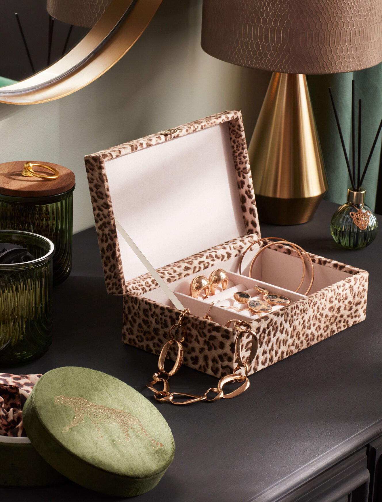 Ordina al meglio i tuoi accessori preferiti con questo portagioie pratico e stiloso dalla stampa animalier. Ogni collana, bracciale o paio di orecchini avrà il suo spazio dedicato, così troverai subito quello che cerchi senza perdere tempo. Questo portagioie dal design originale non solo ti aiuta a organizzare i tuoi gioielli, ma aggiunge anche un tocco di charme alla tua camera o al tuo bagno. Ideale per chi ama avere tutto a portata di mano con eleganza!
