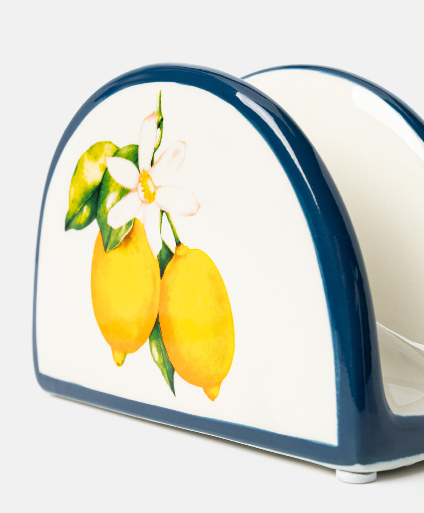 Aggiungi un tocco di freschezza alla tua tavola con questo portatovaglioli, decorato con limoni. Perfetto per aggiungere un pizzico di allegria alle tue cene estive, questo accessorio è realizzato in un materiale resistente e anti-graffio, che mantiene intatto il suo aspetto nel tempo. Il design ispirato ai paesaggi mediterranei cattura l’attenzione e rende ogni pasto un’occasione speciale. Questo portatovaglioli è ideale per chi ama unire funzionalità e stile in cucina!