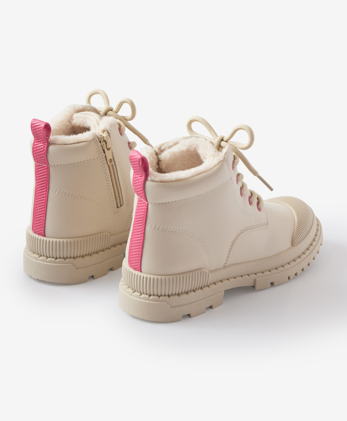 Questi scarponcini da bambina in elegante colore crema uniscono stile e comfort e sono perfetti per affrontare le giornate autunnali. Ideali da indossare sia con pantaloni che con gonne, aggiungono un tocco unico ad ogni outfit. La pratica chiusura laterale permette alle bambine di indossarle facilmente e autonomamente. Disponibili nei numeri dal 22 al 31, questi scarponcini sono l’accessorio indispensabile per ogni giovane che ama la moda.