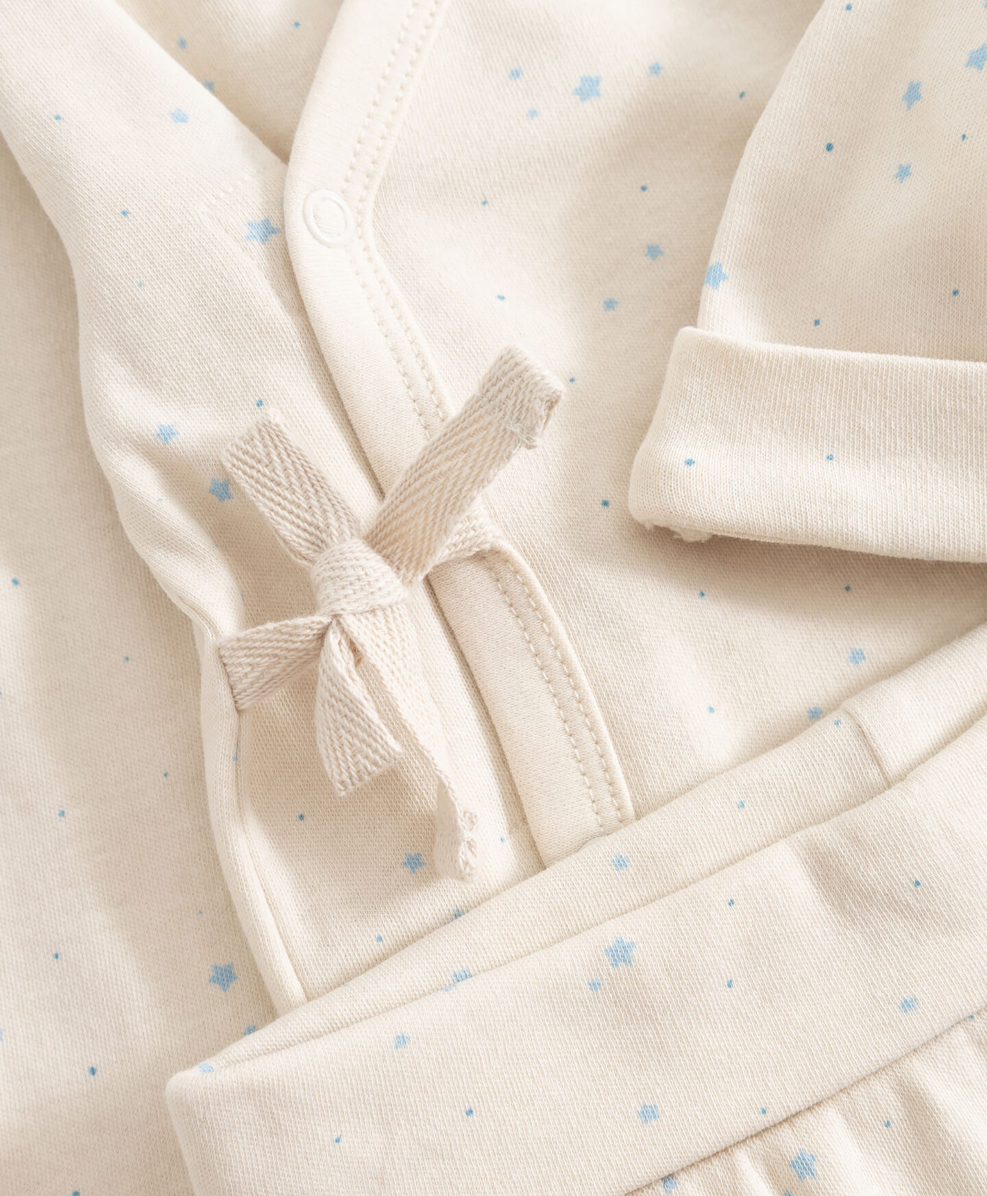 Regala al tuo piccolo un comfort incredibile con questo set beige da neonato in 100% cotone biologico. Composto da body, leggings e cappellino, è la soluzione perfetta per vestire il tuo bimbo in ogni occasione. Il cotone organico, incredibilmente morbido e traspirante, garantisce benessere durante il sonno e le giornate fuori casa. Questo completo è un’idea regalo dolce e pratica per accogliere il nuovo arrivato con stile e amore!