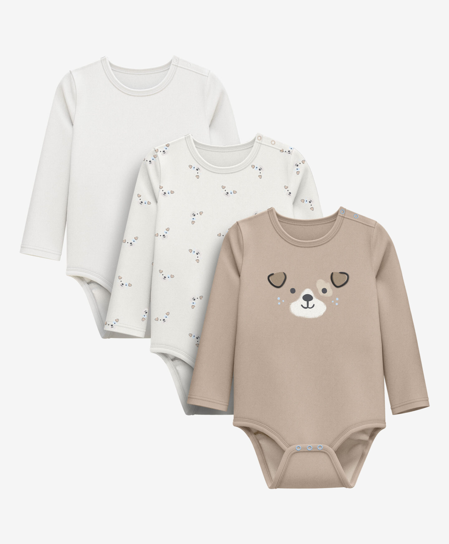 Completa il corredino del tuo piccolo con questo set di 3 body da neonato in 100% cotone, arricchiti con tenere stampe di cagnolini e pensati per gli amanti degli amici a quattro zampe. Realizzati in fibre naturali, questi body sono traspiranti, leggeri e comodi da indossare. La pratica chiusura a scatto facilita il cambio del pannolino e offre una perfetta vestibilità, mentre il motivo con i cagnolini aggiunge fascino e un tocco di allegria. Disponibili anche in altre varianti, questi body sono un must-have per il guardaroba del tuo bambino.