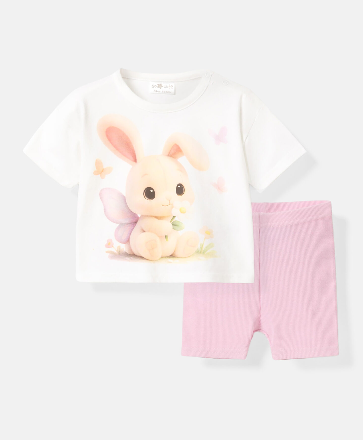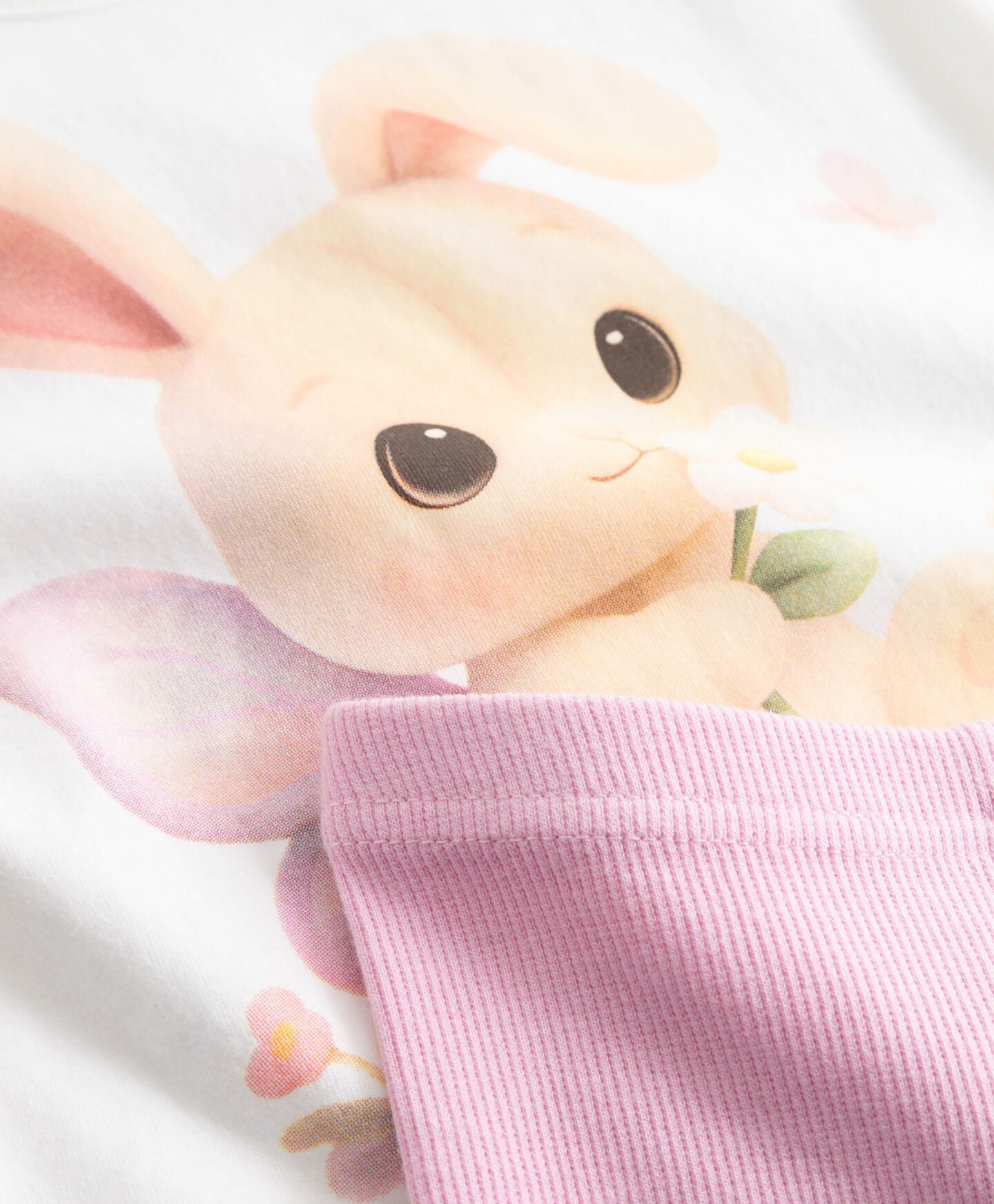 Regala alla tua piccola un look tenero e comodo con questo set da bambina composto da t-shirt e leggings. La maglietta in morbido cotone, con il dolce coniglietto stampato sul davanti, è perfetta per la pelle delicata dei più piccoli. I leggings, realizzati con un’alta percentuale di cotone, sono elastici e permettono libertà di movimento durante il gioco. Ideale per le giornate all’asilo o per i momenti di relax a casa, questo set rosa è un must-have per il guardaroba della tua bambina.