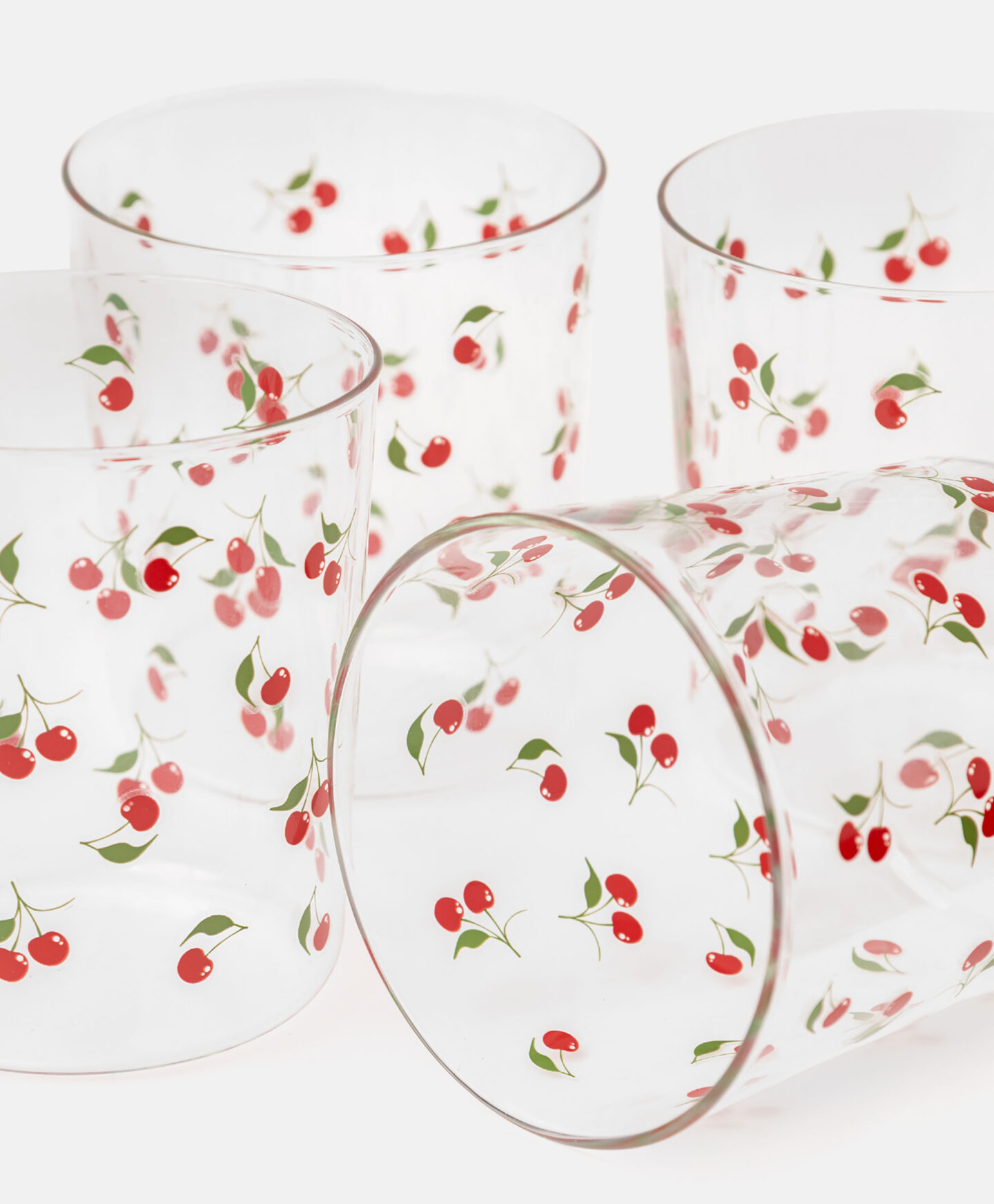 Porta il sole in tavola con questo set di 4 bicchieri decorati con ciliegie! Realizzati in vetro resistente, questi bicchieri sopportano sia le bevande ghiacciate che quelle calde senza problemi. Pratici da lavare e incredibilmente versatili, sono perfetti per servire succhi freschi, cocktail estivi o semplicemente acqua con stile. Il design vivace e colorato renderà ogni momento di convivialità ancora più speciale e divertente!