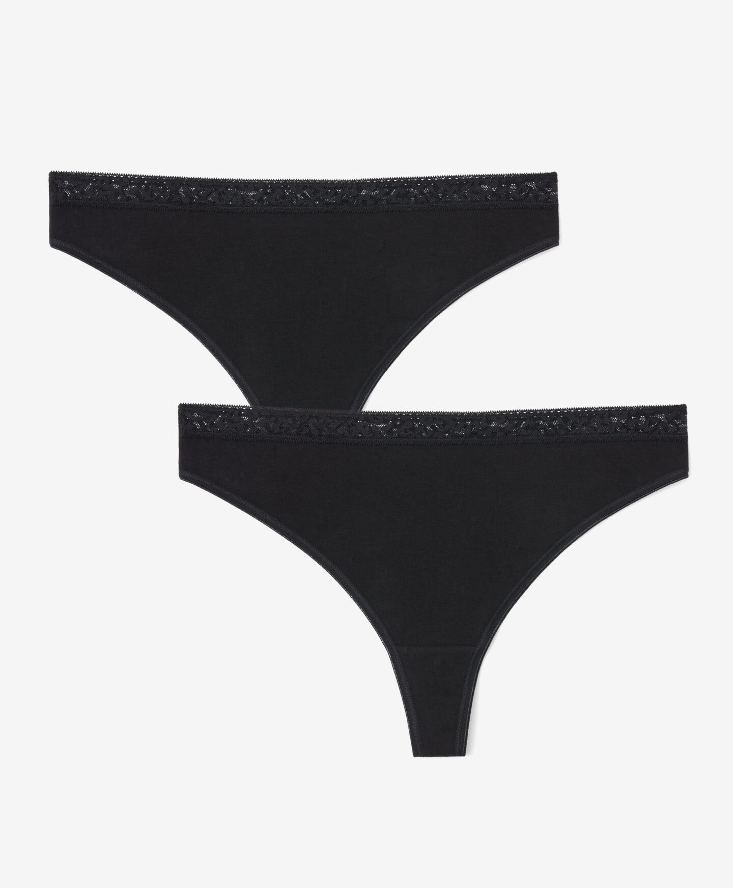 Lasciati conquistare dal comfort con questo set di 2 perizomi neri da donna, pensati per chi cerca praticità senza rinunciare alla femminilità. Realizzati con un’alta percentuale di cotone e un tocco di elastan, si adattano perfettamente al corpo garantendo una morbidezza impareggiabile e un fit invisibile sotto ogni capo. Il pizzo sul bordo aggiunge un dettaglio elegante, mentre il taglio comodo li rende ideali per indossarli tutti i giorni.