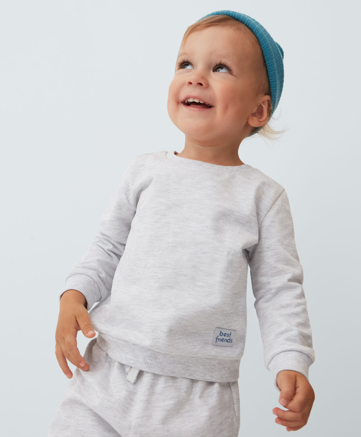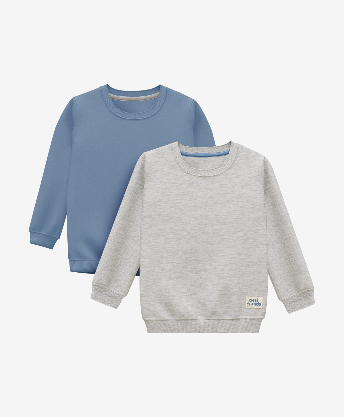 Prepara il corredo del tuo piccolo con questo pratico set di 2 felpe da neonato in morbido cotone, disponibili in toni neutri come grigio e blu che si abbinano perfettamente ai pantaloni coordinati della stessa collezione. Le maniche con polsini elasticizzati assicurano calore e comfort, mentre il tessuto delicato sulla pelle e il design minimalista le rendono versatili per ogni occasione, dall’asilo nido alle passeggiate in famiglia. Queste felpe sono un must-have per completare il guardaroba del tuo bambino con stile e praticità.