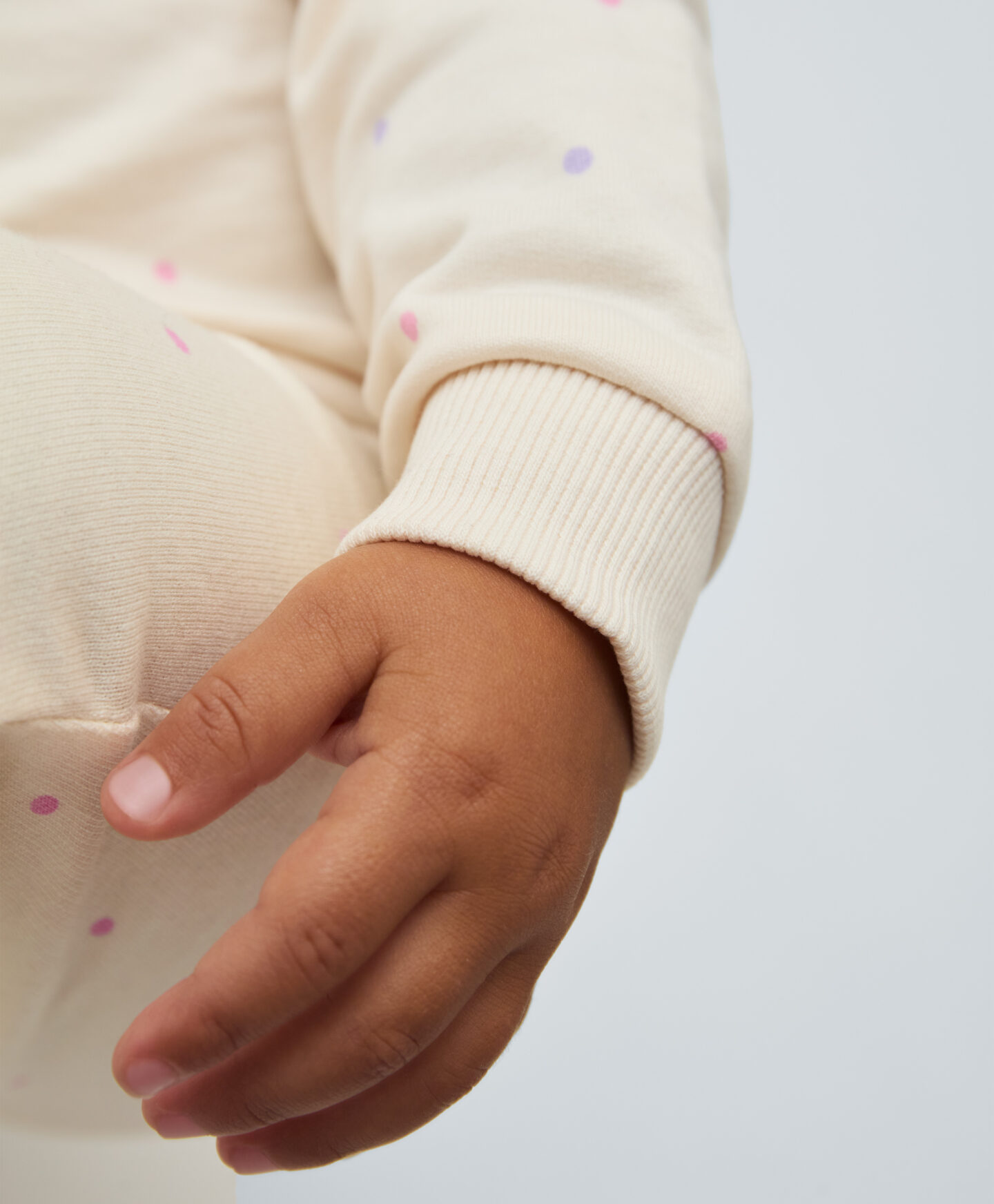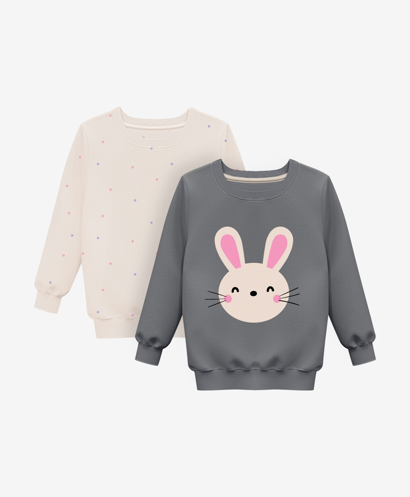 Fai innamorare la tua piccola di questi dolcissimi coniglietti con questo set di 2 felpe da neonata in morbido cotone, realizzate nei toni del grigio e del beige. Pensate per le giornate più fresche, queste felpe sono calde e avvolgenti, con i polsini elasticizzati che garantiscono una vestibilità perfetta. Ideale da abbinare ai pantaloni coordinati della stessa collezione, questo set è un must-have per il corredo della tua bambina, unendo comfort e stile in ogni dettaglio.