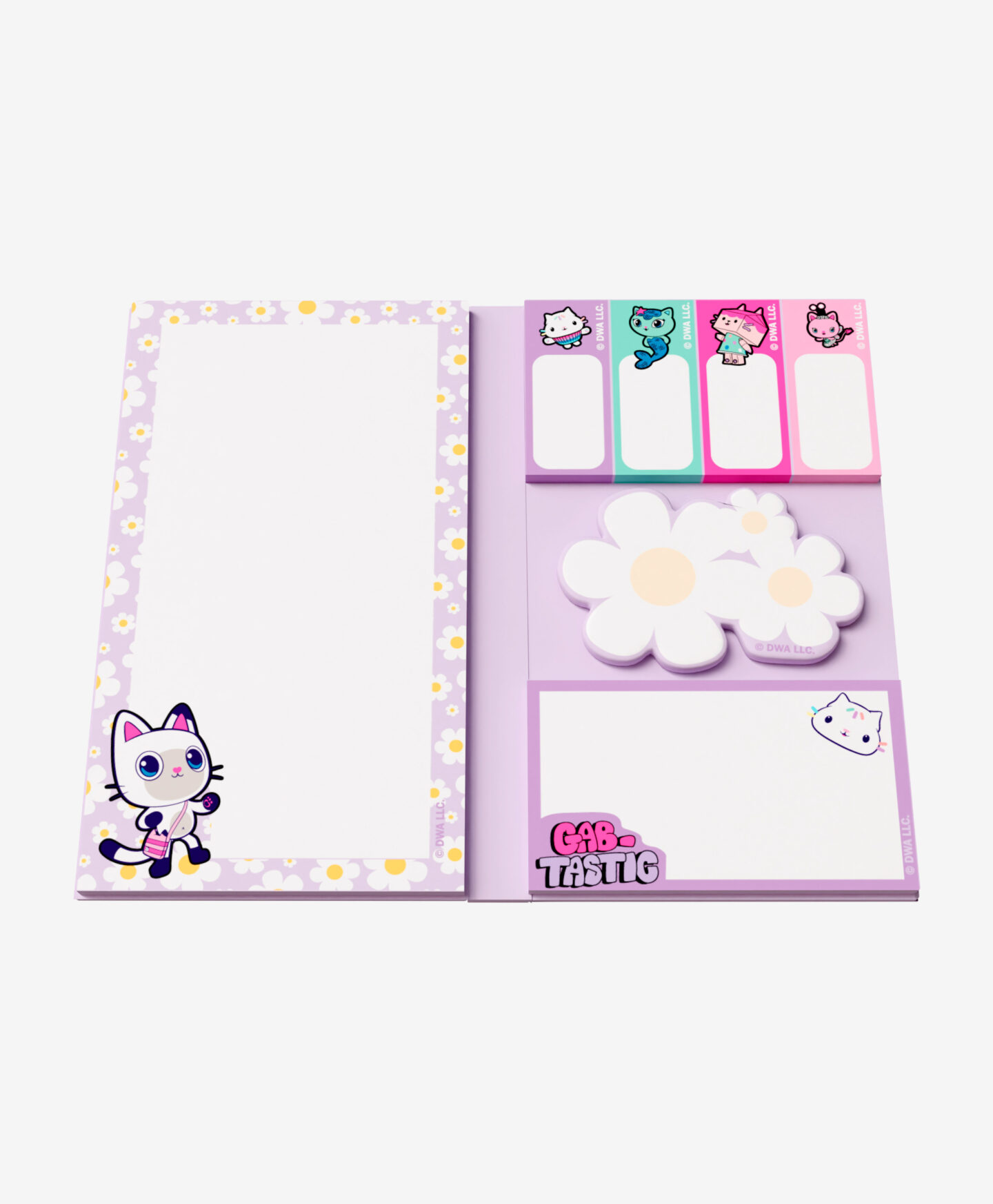 Porta un tocco di magia e colore alla tua scrivania con questo set di foglietti adesivi di Gabby! Racchiusi in un delizioso taccuino, sono perfetti per organizzare le tue note in modo pratico e divertente. Realizzati con i personaggi della serie, questi foglietti sono ideali per aggiungere fantasia e creatività alle tue giornate!