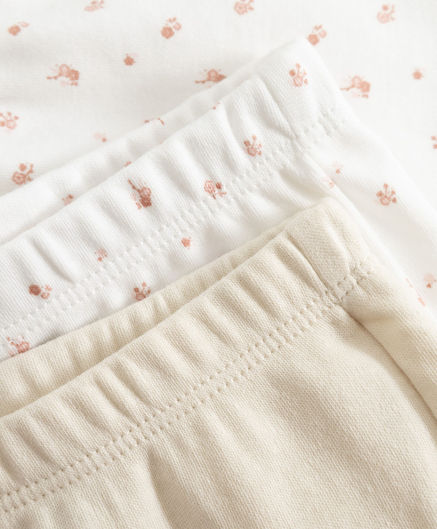 Regala alla tua piccola il massimo comfort con questo set di 2 leggings da neonata in cotone biologico di colore bianco e beige. Morbidi e delicati sulla pelle, avvolgono il corpo in una coccola di benessere durante il sonno e le prime passeggiate. Ideali da abbinare ai body della stessa collezione, questi leggins sono perfetti per creare look sempre nuovi. Un must-have per il guardaroba della tua principessa!
