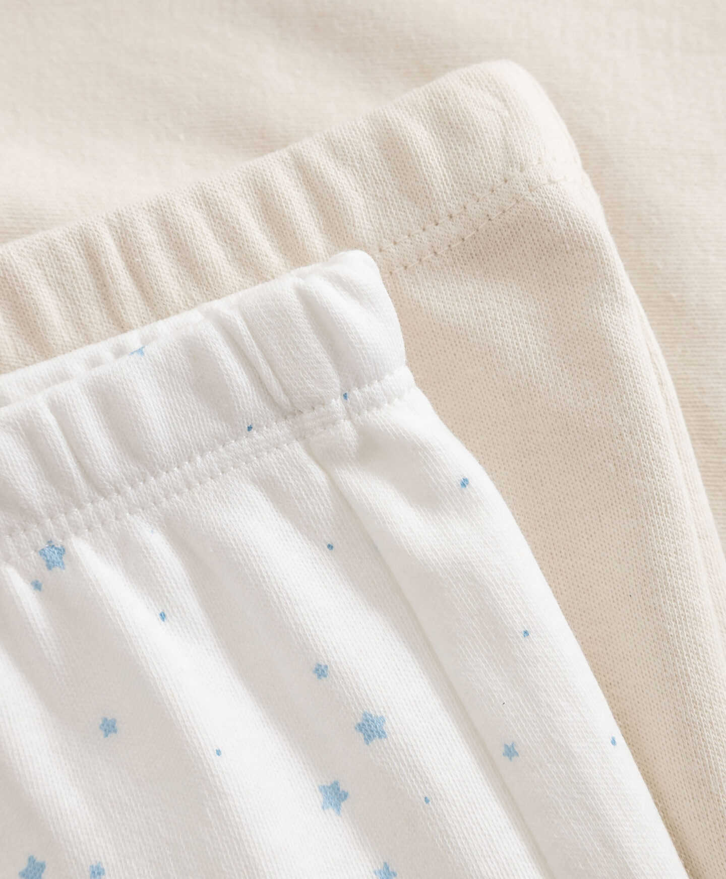 Regala al tuo piccolo il massimo del comfort con questo set di 2 pantaloni da neonato in 100% cotone biologico di colore beige e bianco. Morbidi e delicati sulla pelle, avvolgono il tuo bimbo in una coccola di benessere durante i pisolini e le sue prime avventure fuori casa. Ideali per creare outfit sempre nuovi, questi pantaloni si possono abbinare facilmente ai body della stessa collezione. La scelta ideale per genitori che cercano qualità e praticità senza rinunciare allo stile!