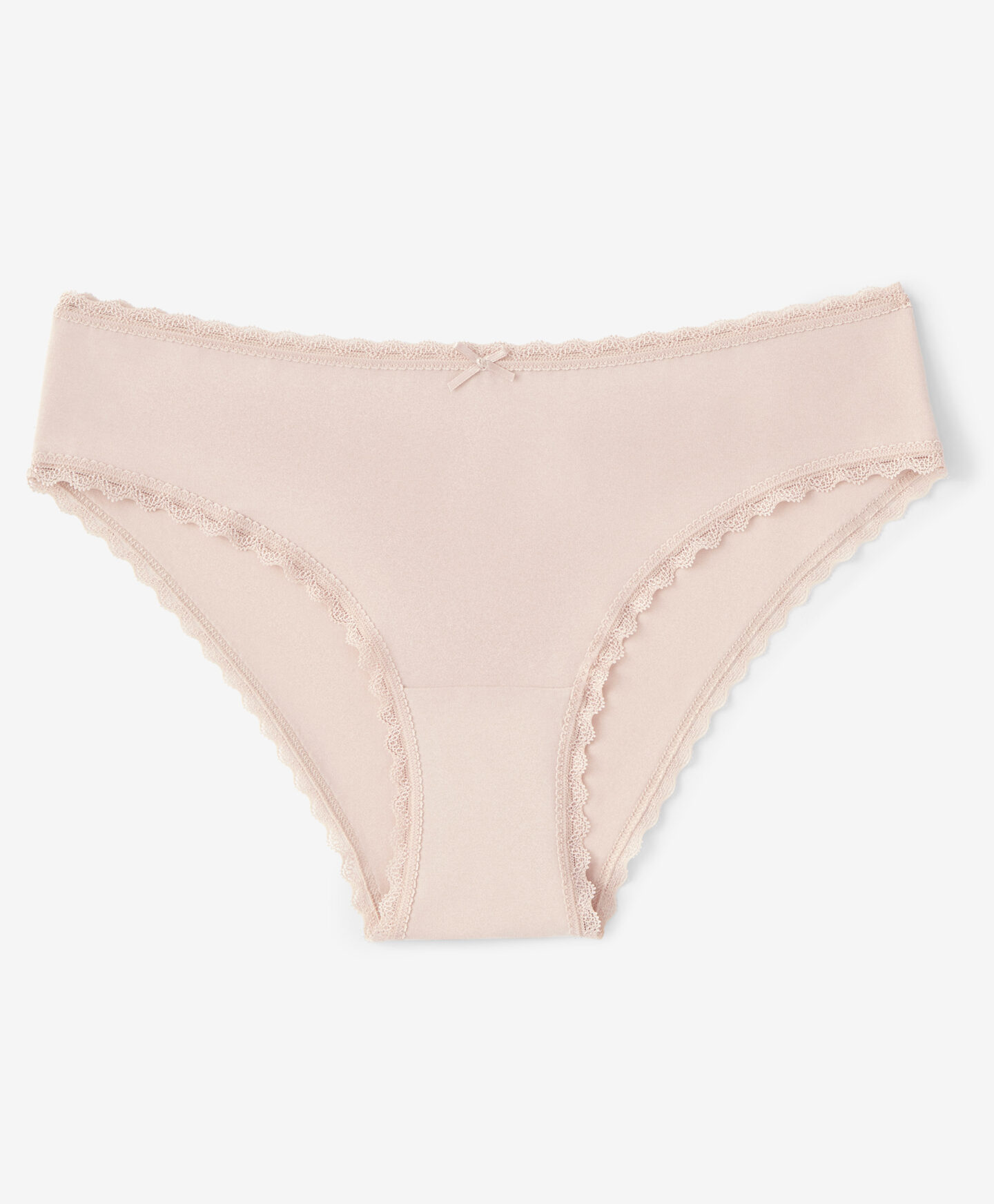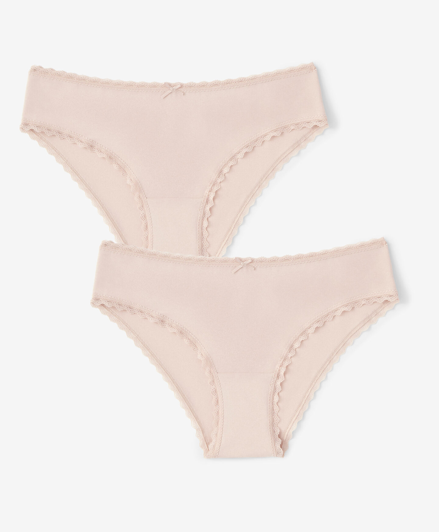 Questo set da 2 slip beige con pizzo è l’ideale per ogni donna che ama unire comfort e femminilità. Realizzati con un’alta percentuale di cotone, questi slip sono perfetti da usare tutti i giorni. Il colore nude permette di indossarli sotto abiti leggeri, mentre l’aggiunta di elastan assicura che si adattino perfettamente al corpo. Disponibili nelle taglie dalla S alla XXL, questi slip sono delicati e traspiranti.