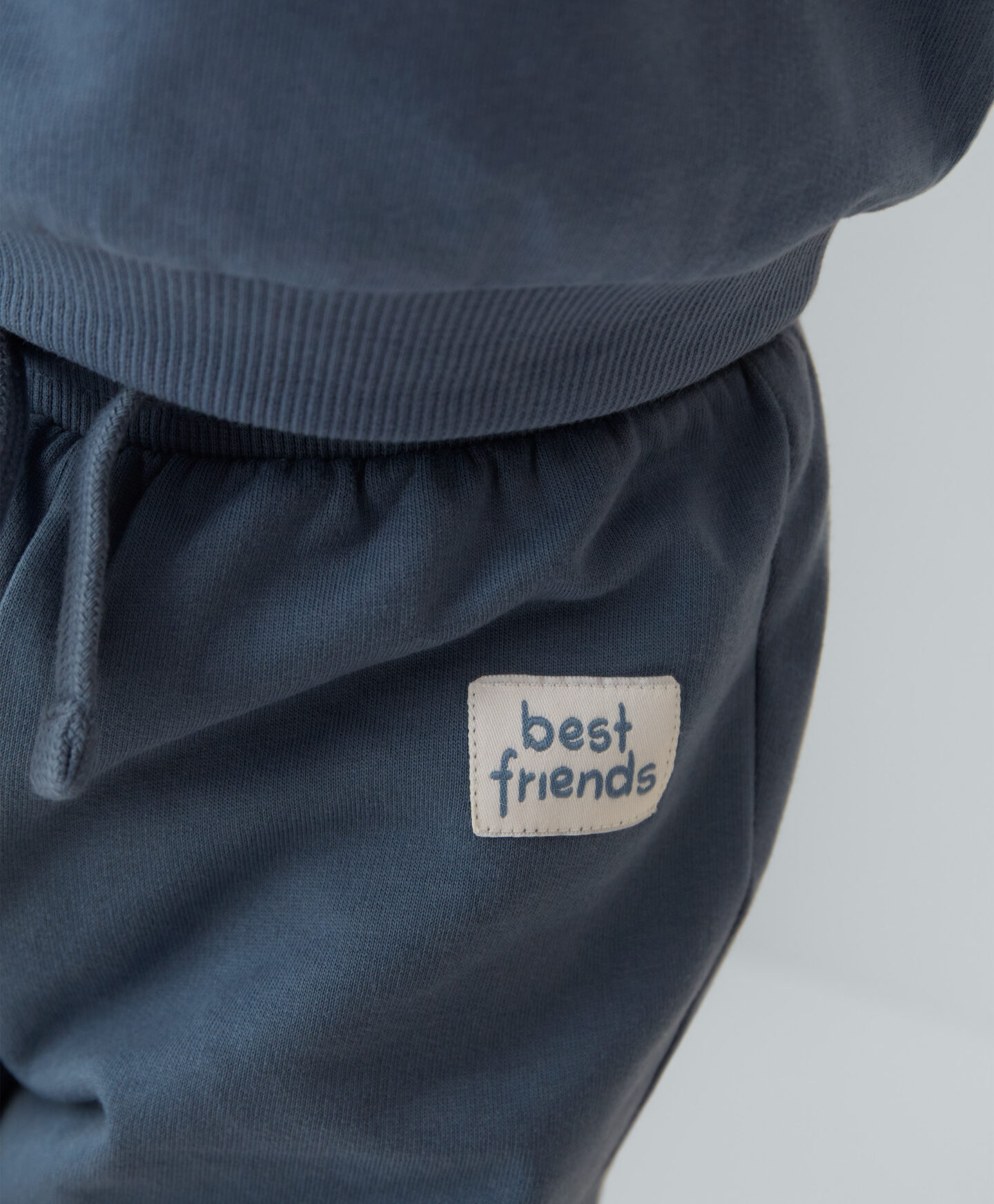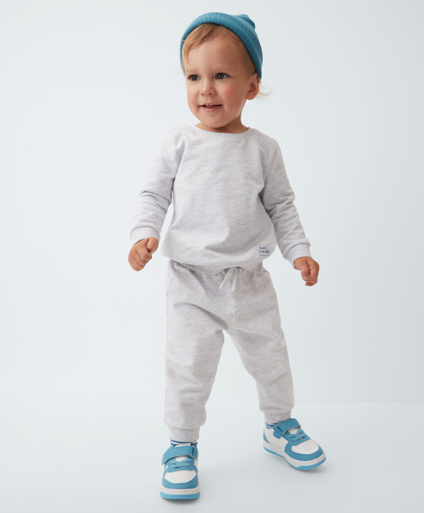 Vesti il tuo piccolo con stile e comfort grazie a questo set di tute da neonato in morbido cotone, composto da 2 pantaloni blu e grigi con fantasie diverse. Leggeri e delicati sulla pelle, sono dotati di elastico in vita e ai polpacci per una vestibilità perfetta che si adatta a ogni movimento. Ideali per completare il corredino, queste tute si abbinano perfettamente alle felpe coordinate della stessa collezione per un look sempre alla moda.