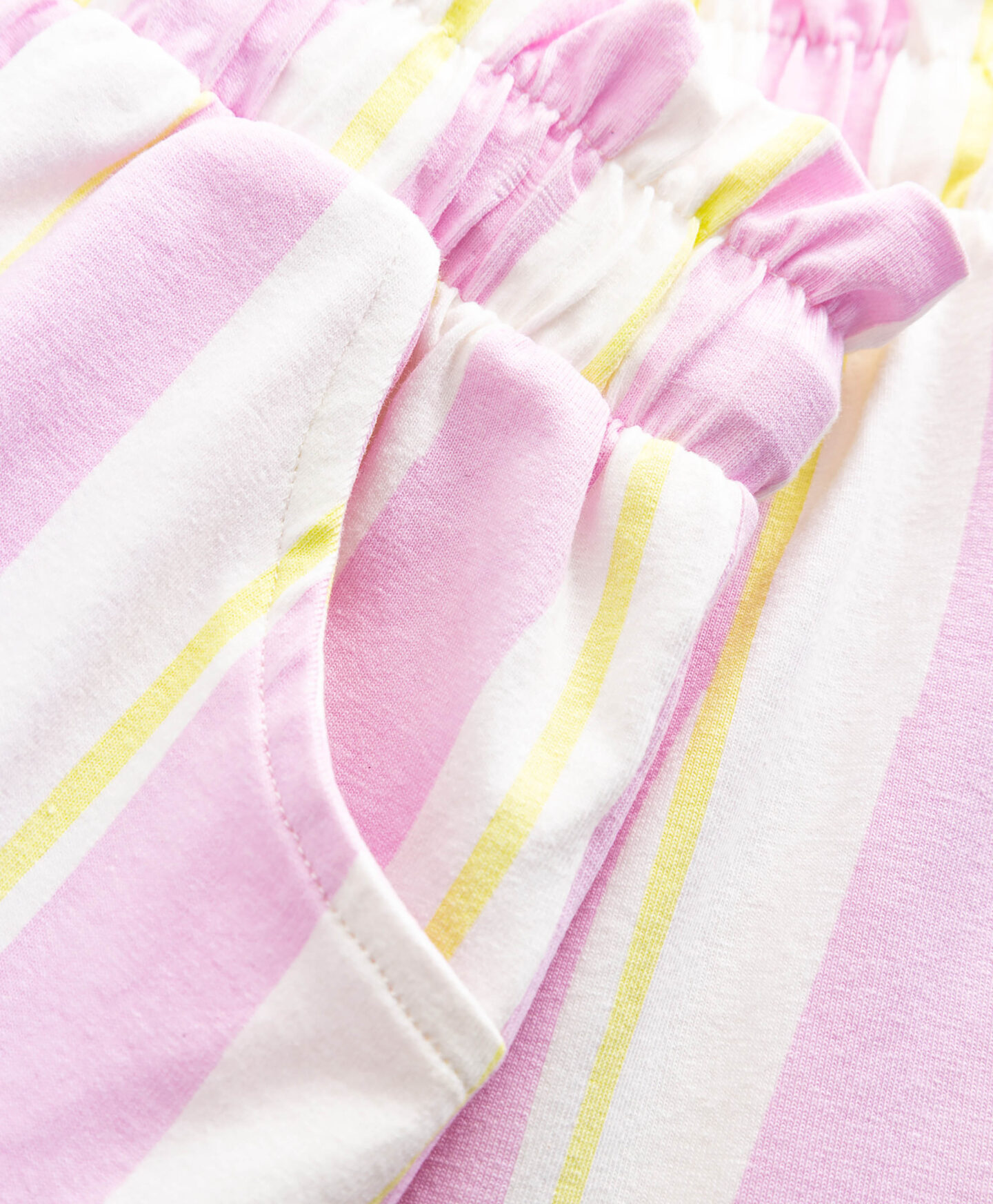 Scopri questi shorts a righe rosa da bambina, perfetti per le giornate calde! Realizzati in un tessuto morbidissimo, lasciano respirare la pelle e sono ideali per giocare senza fastidi. La vita elasticizzata si adatta perfettamente, garantendo comfort tutto il giorno. Leggeri e freschi, sono un must-have per l’estate della tua piccola!