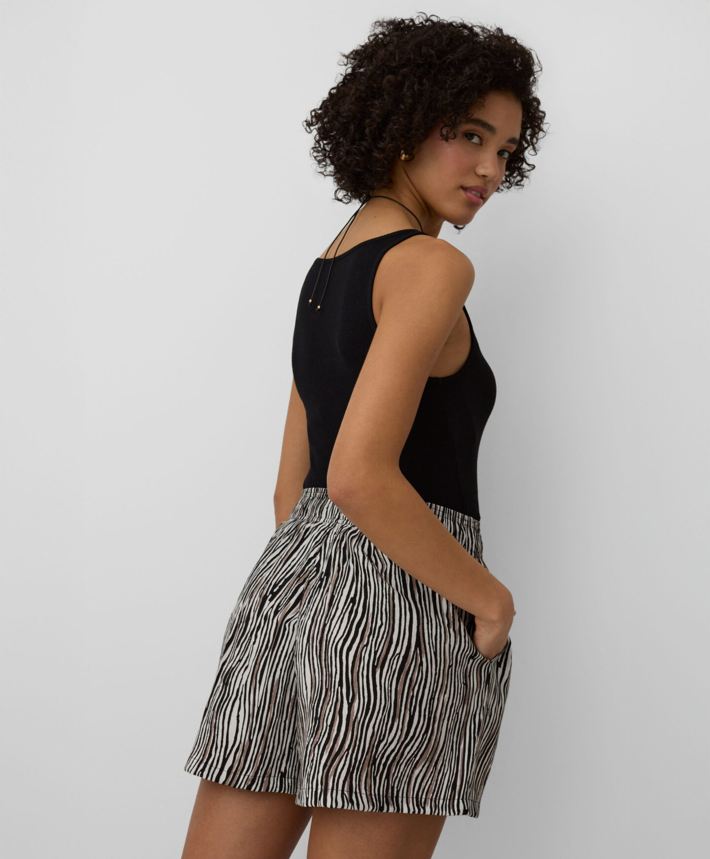 Aggiungi un tocco selvaggio al tuo look estivo con questi shorts animalier da donna, realizzati in viscosa leggera e traspirante. Perfetti per le giornate più calde, si adattano comodamente al corpo grazie alla vita elasticizzata e offrono una morbidezza unica sulla pelle. Abbinali a un top a tinta unita, che sia una canotta semplice o una camicetta elegante, per creare outfit sempre alla moda.
