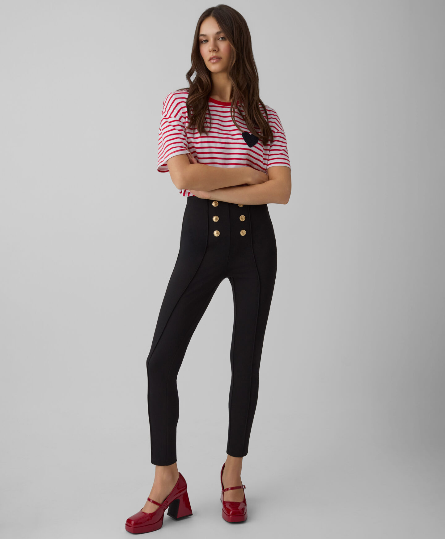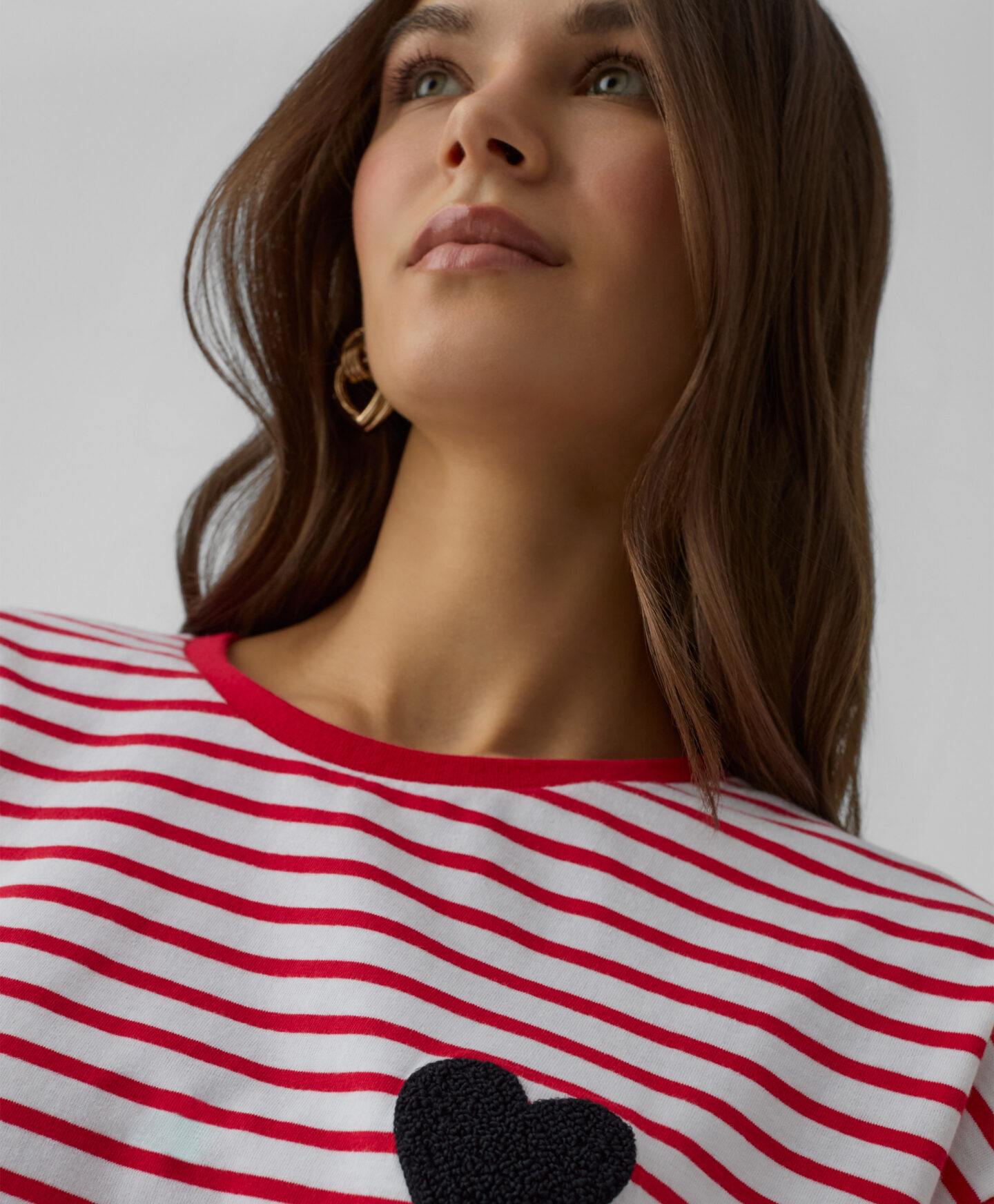 T-shirt a righe con cuore donna