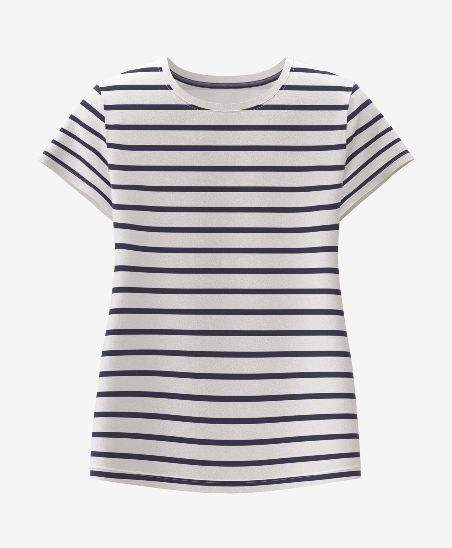 Scopri questa classica T-shirt a righe da donna, realizzata con alto contenuto di cotone e perfetta per chi ama il comfort. L’intramontabile motivo a righe aggiunge eleganza a qualsiasi outfit, mentre il taglio classico assicura il massimo comfort. Traspirante e morbida al tatto, questa T-shirt è un must-have per le giornate calde!