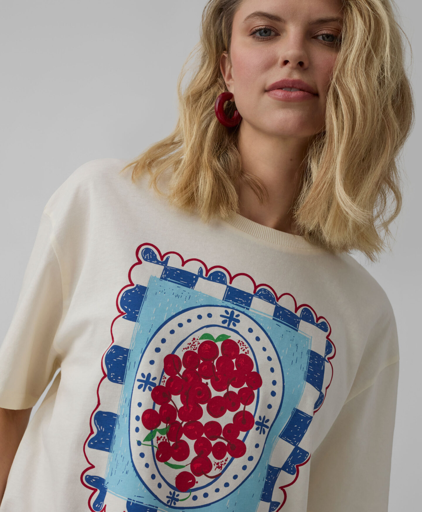 T-shirt beige con stampa da donna