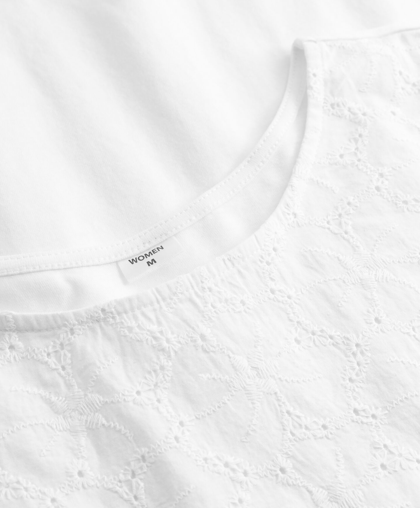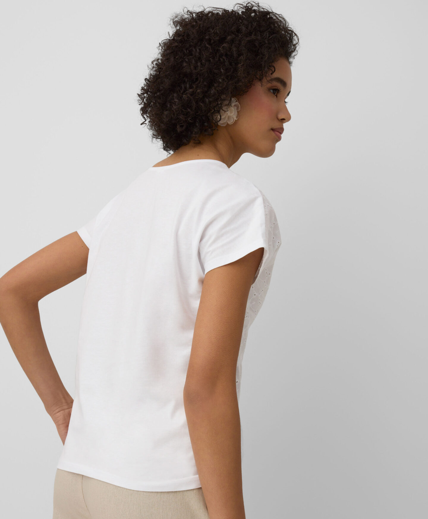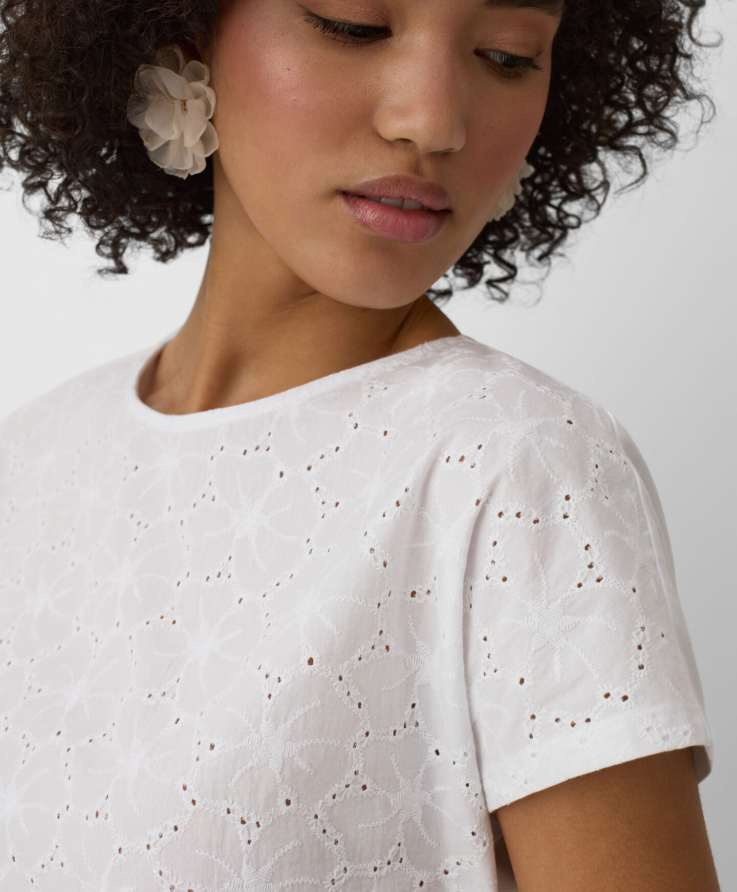 Aggiungi un tocco di eleganza al tuo stile con questa t-shirt bianca da donna in 100% cotone. Il delicato ricamo sul davanti aggiunge un dettaglio raffinato, mentre il tessuto traspirante garantisce comfort per tutto il giorno. Il taglio classico e i colori neutri la rendono un capo versatile, perfetto da abbinare a jeans, shorts o pantaloni eleganti. Ideale per chi cerca un look semplice ma di carattere, questa maglietta è un must-have per il tuo guardaroba.