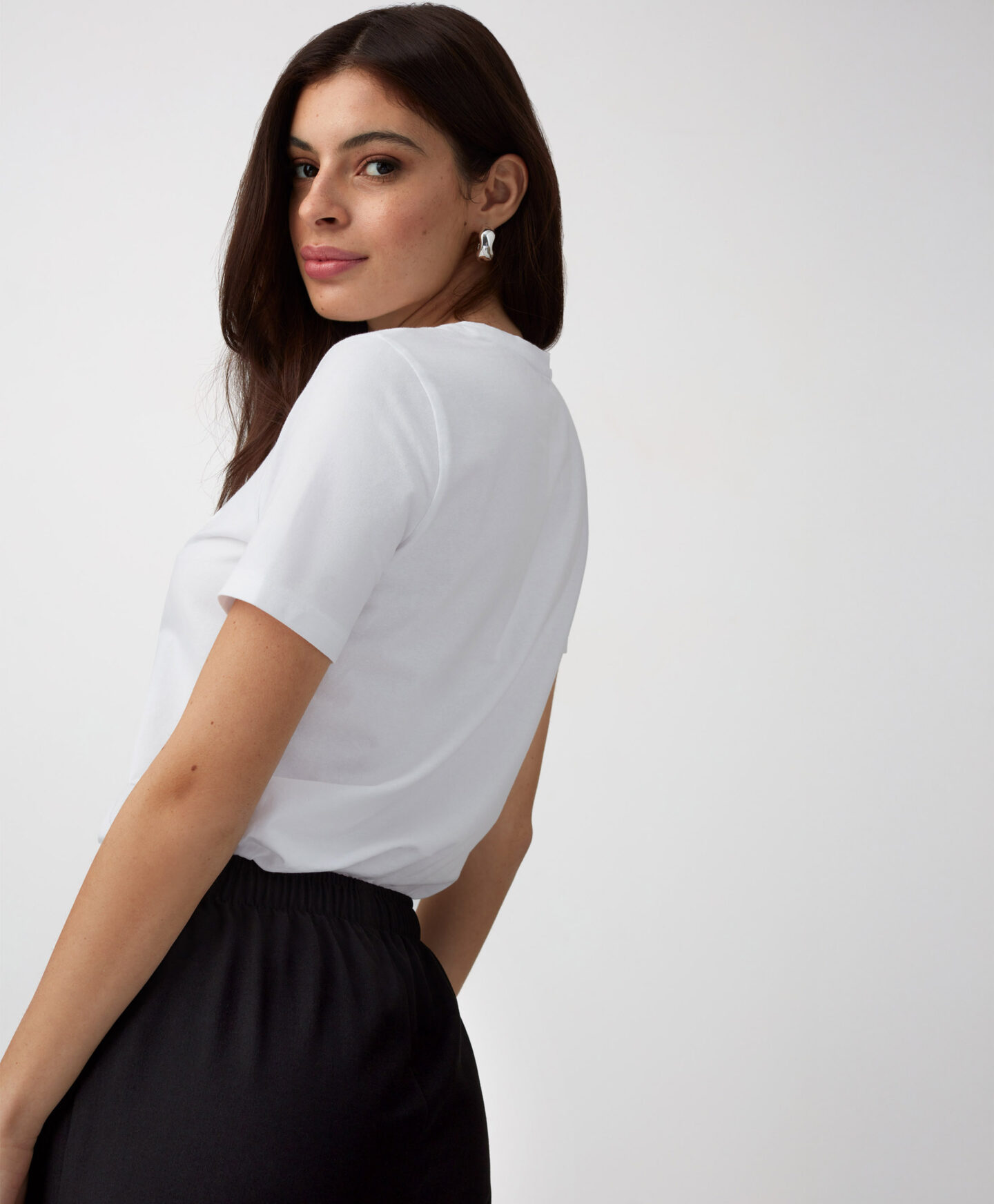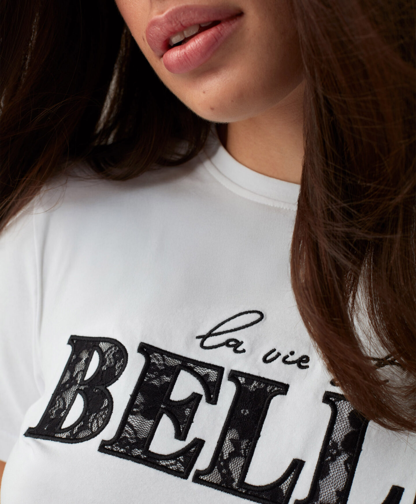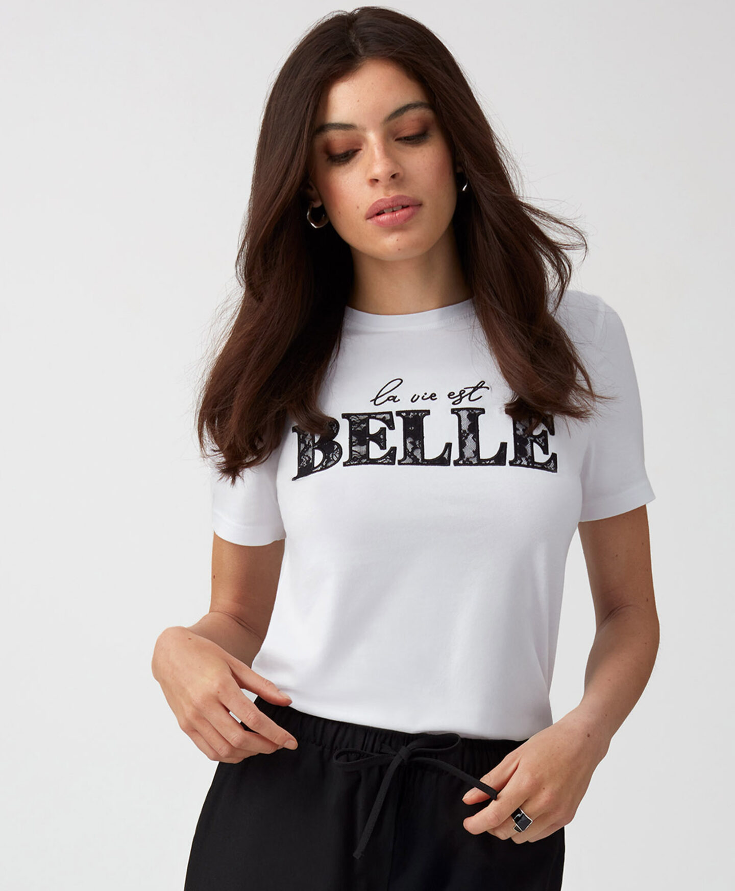 Aggiungi un tocco di stile al tuo guardaroba con questa T-shirt bianca da donna, realizzata in morbido cotone e arricchita da una scritta sul davanti. La stampa trendy la rende unica e perfetta per esprimere la tua personalità. Ideale per creare outfit casual e alla moda, questa T-shirt si abbina facilmente a jeans, pantaloncini o gonne. Disponibile nelle taglie dalla S alla XXL garantisce il massimo comfort.