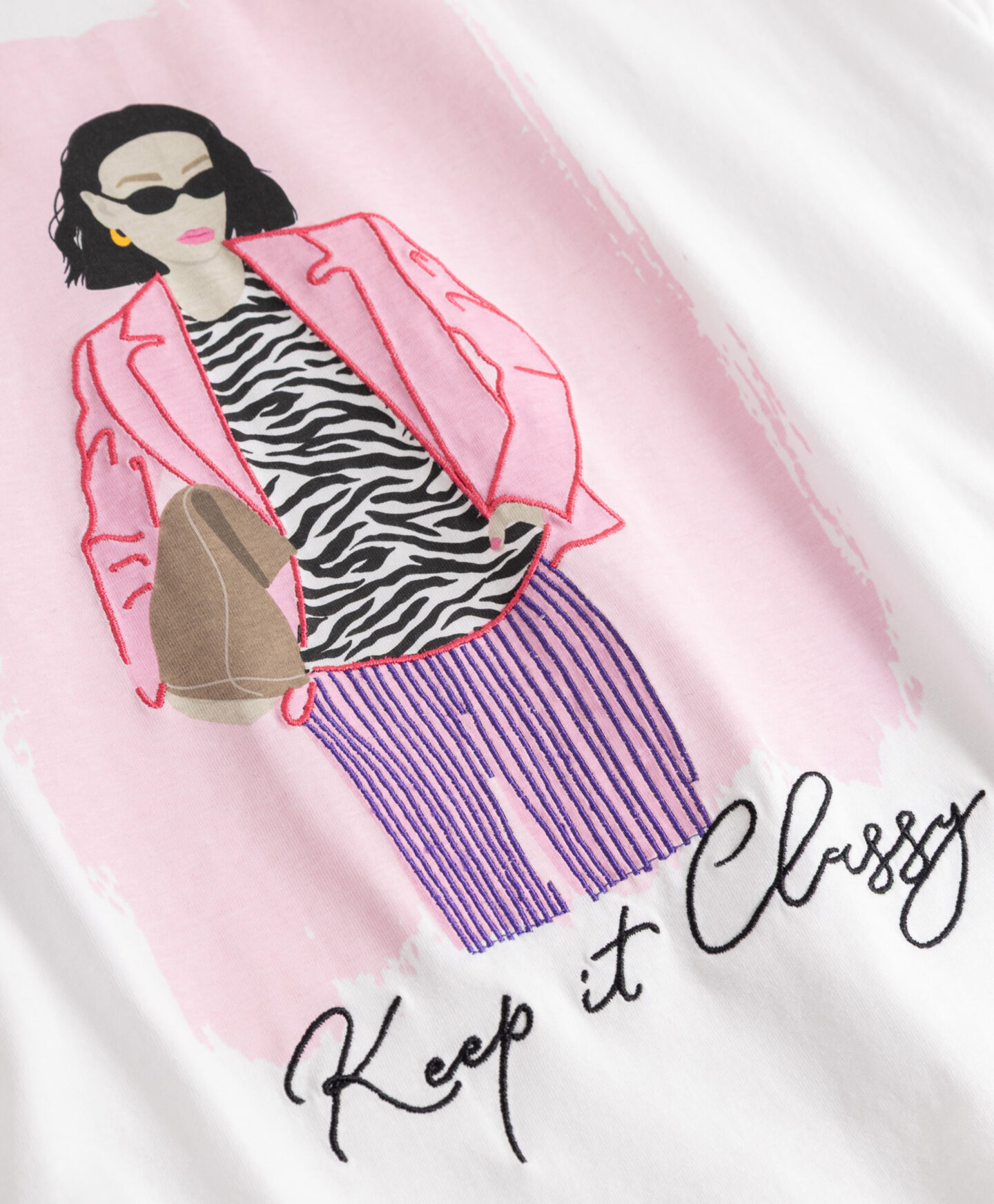 Rendi ogni giorno speciale con questa maglietta da donna in 100% cotone, perfetta per chi ama il comfort e non vuole rinunciare allo stile. Morbida e traspirante, si prende cura della tua pelle in ogni momento, che tu sia al lavoro, in giro per commissioni o a rilassarti a casa. Il design originale con una stampa colorata sul davanti aggiunge un tocco di personalità al tuo look, permettendoti di esprimere la tua unicità con semplicità.