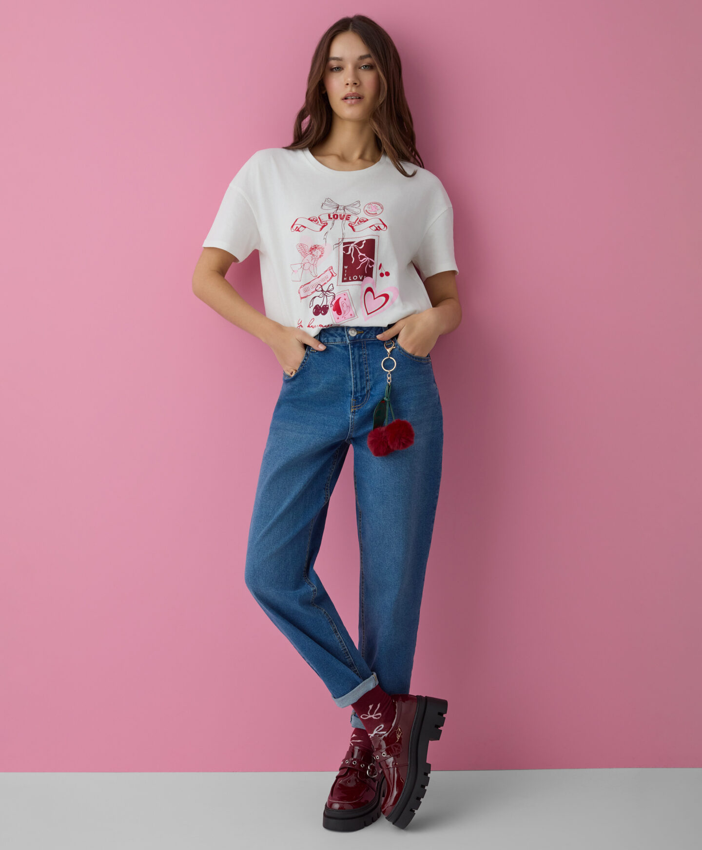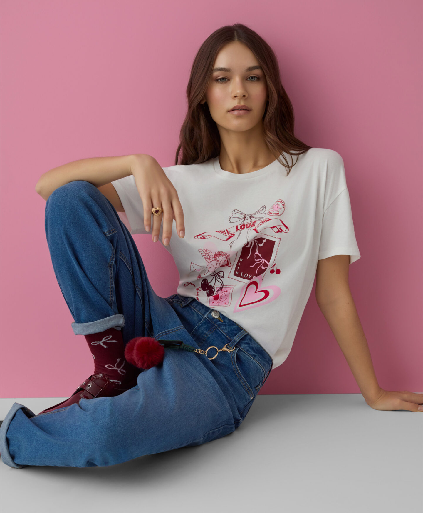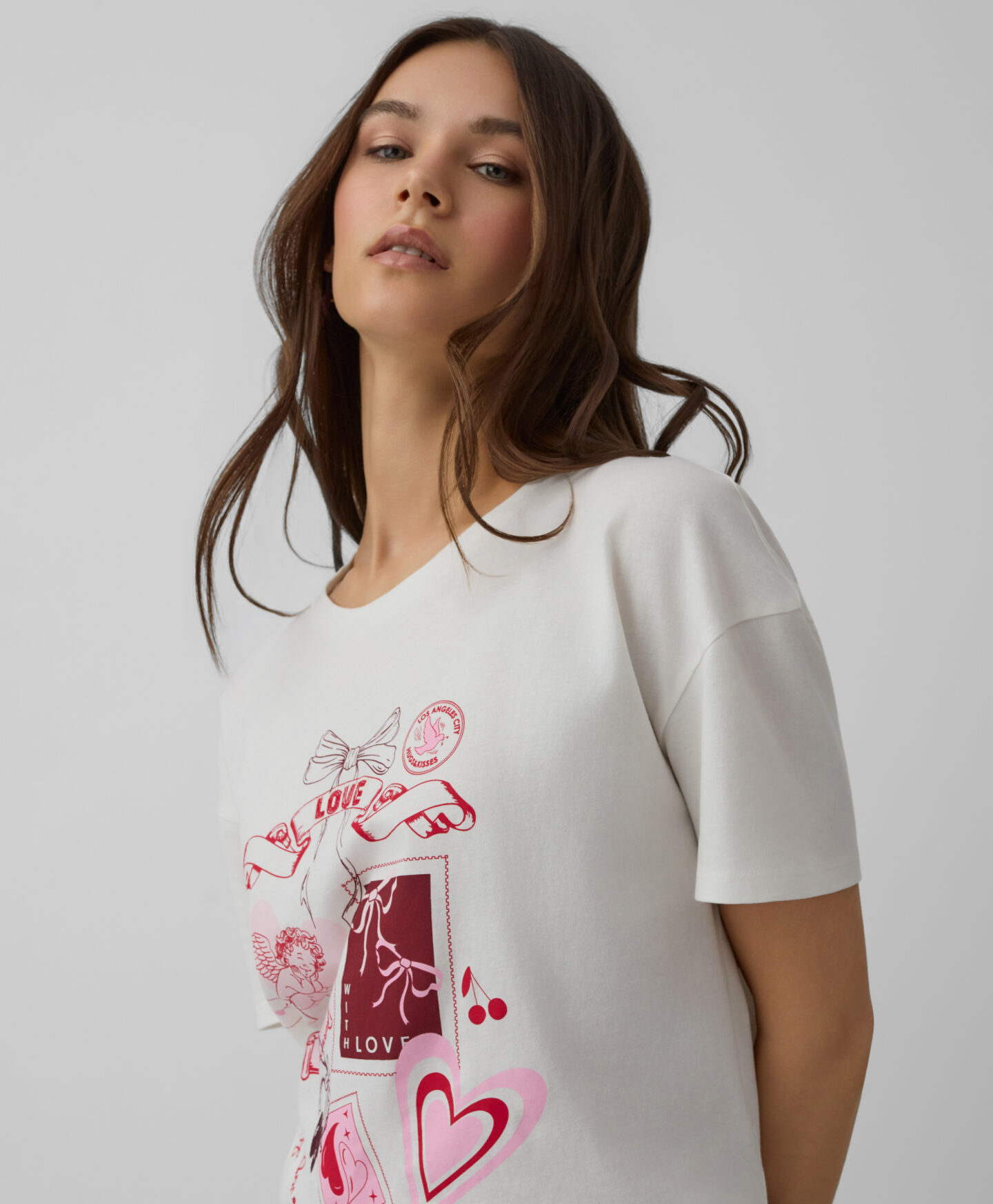 T-shirt con stampa rosa da donna