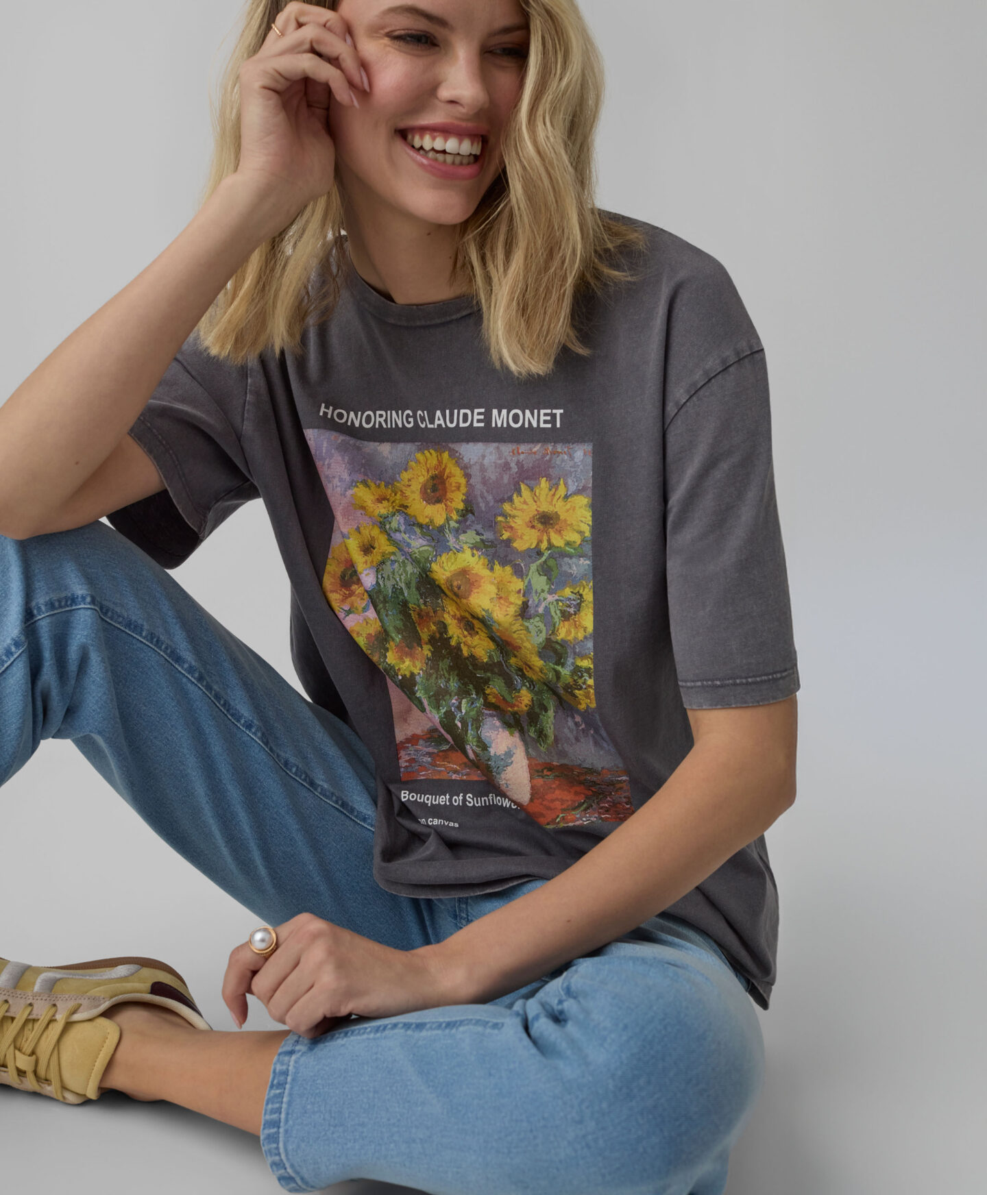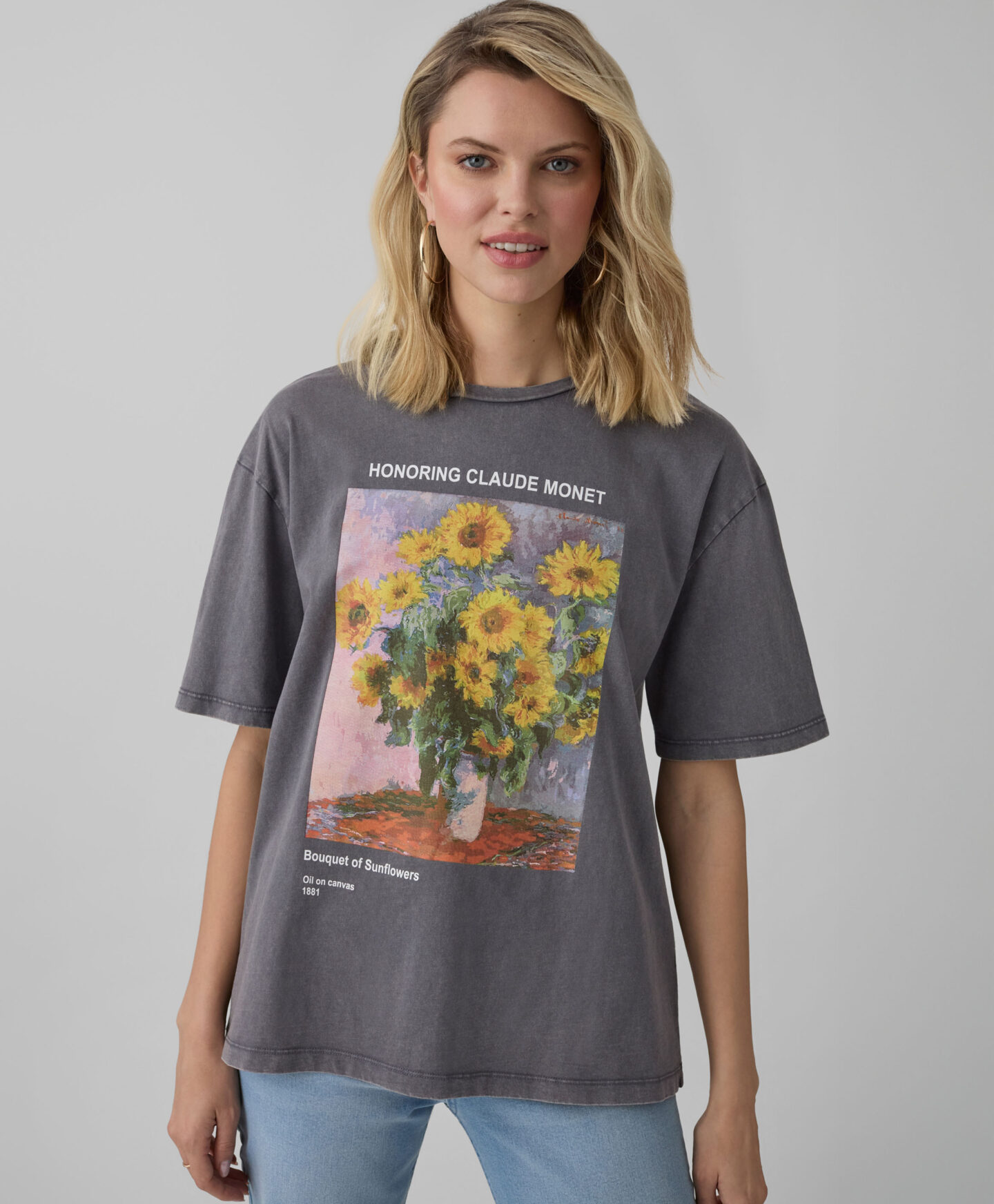 T-shirt grigia con girasoli donna