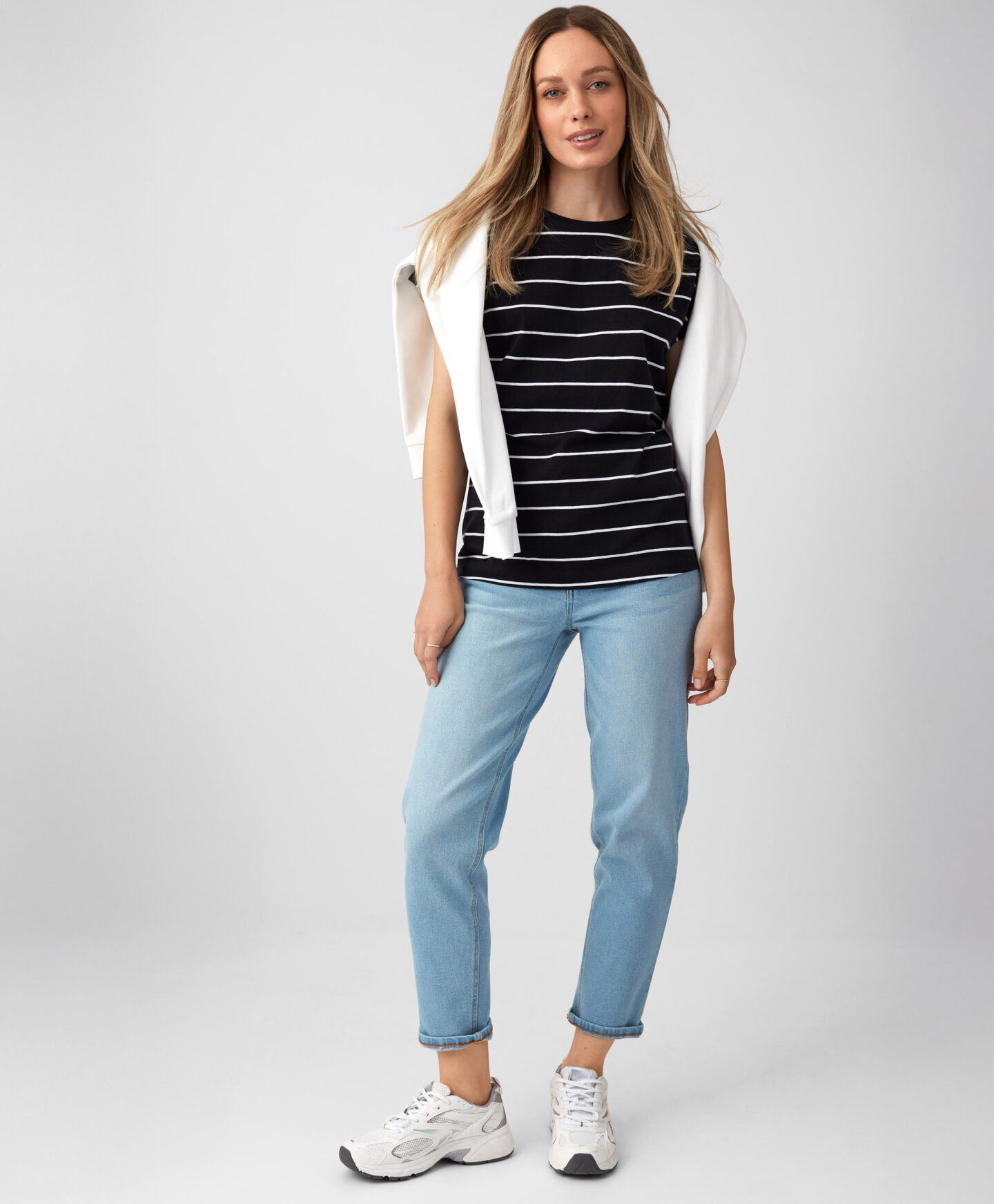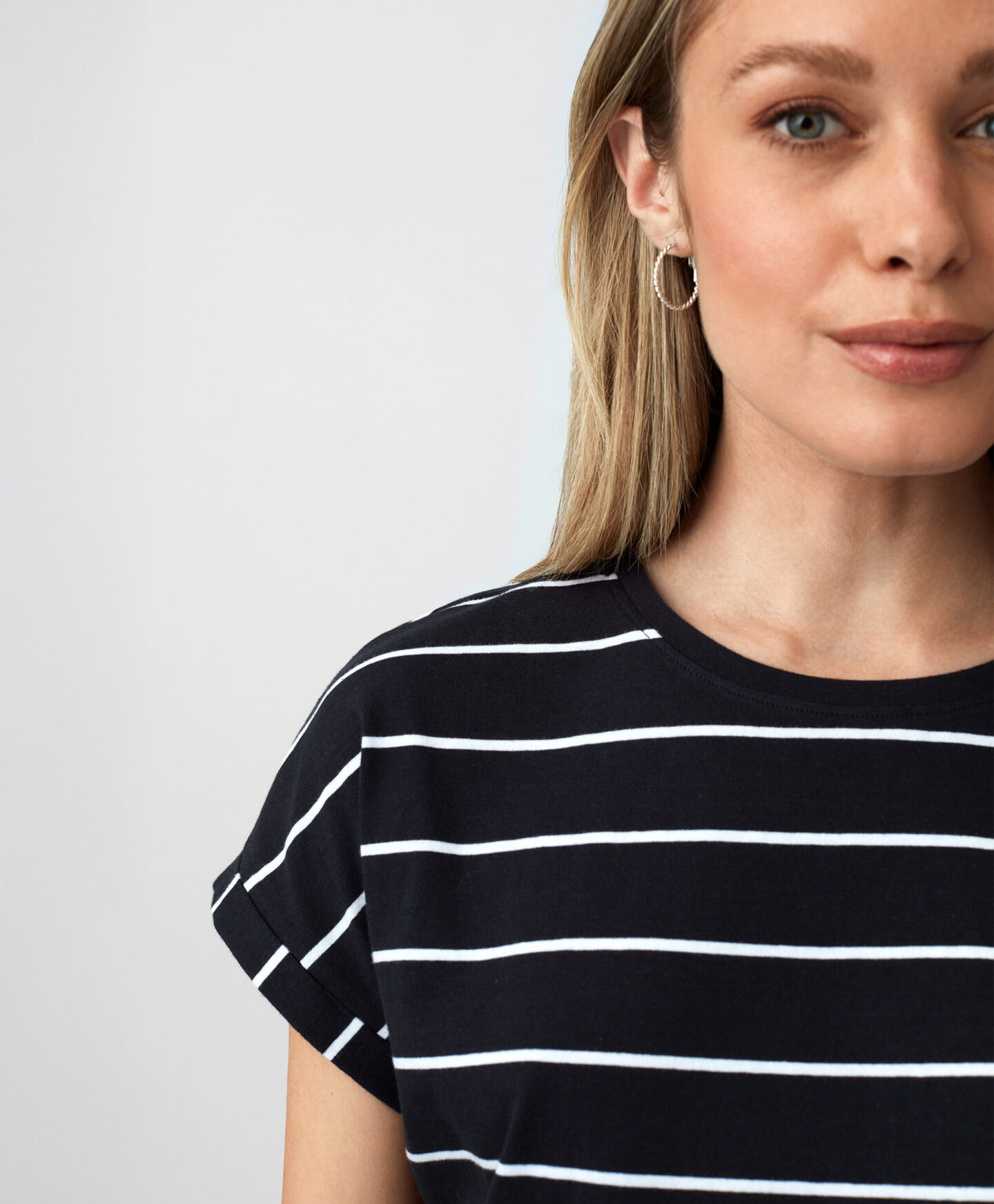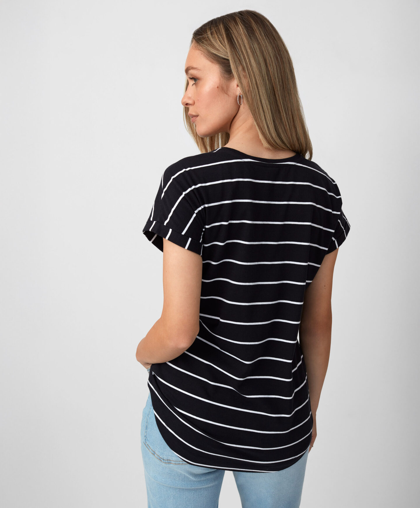 T-shirt nera a righe da donna