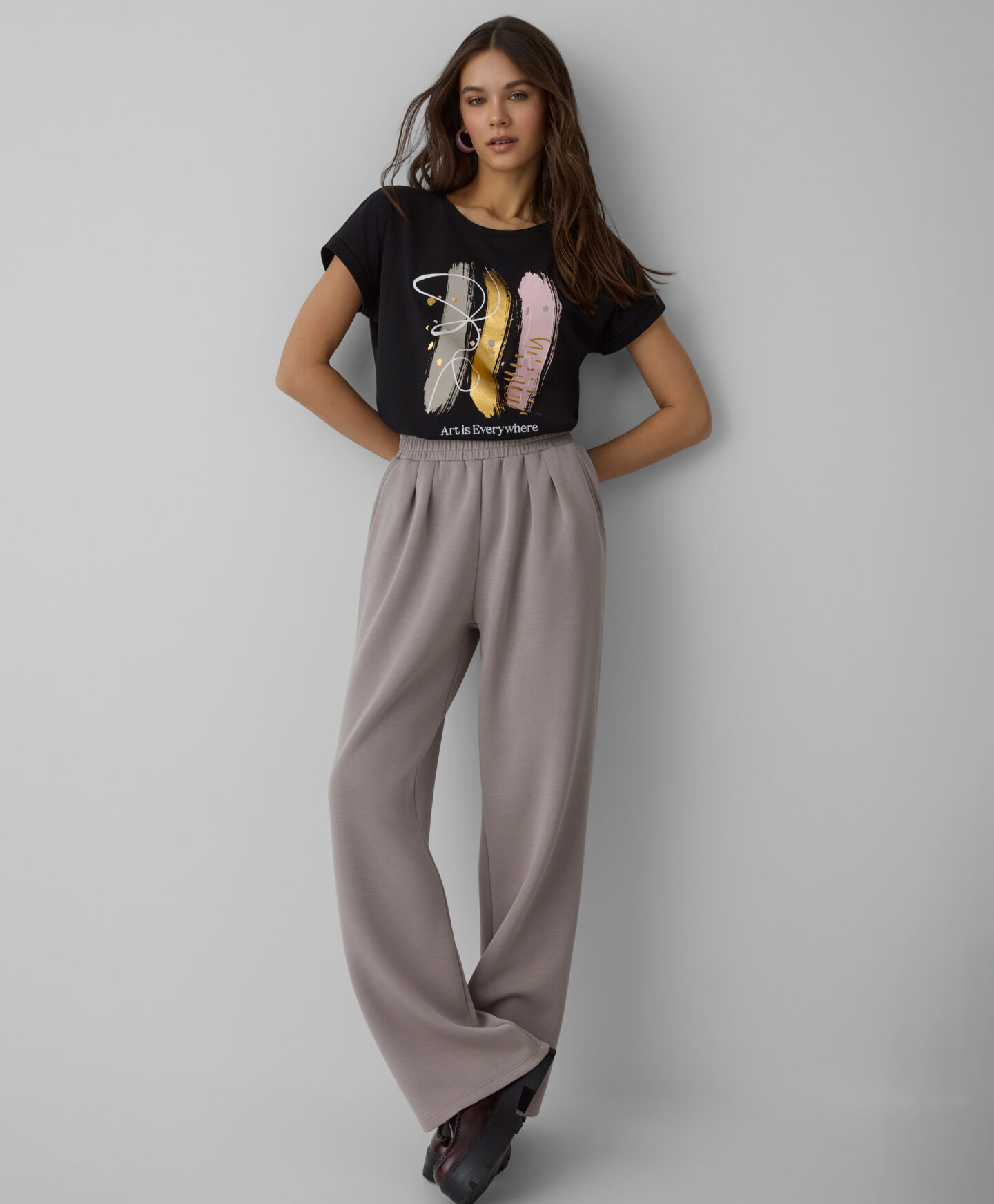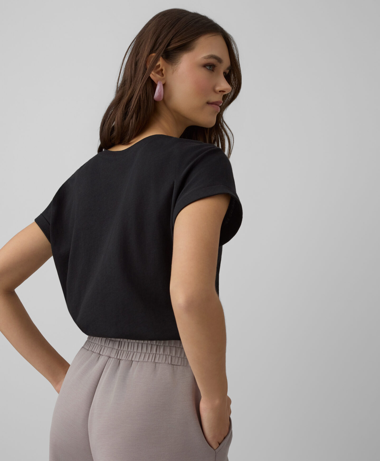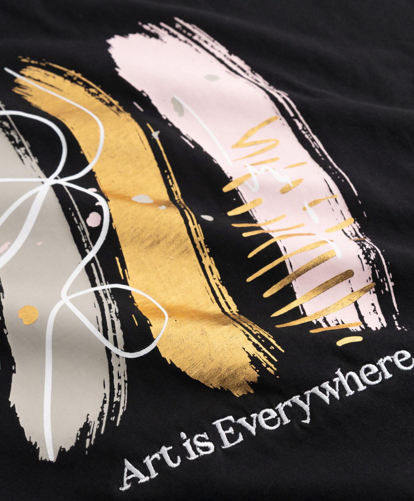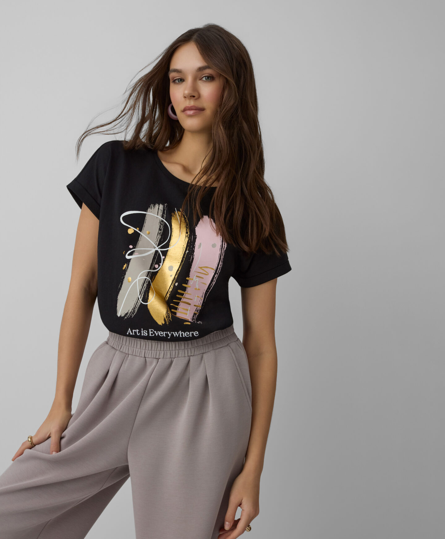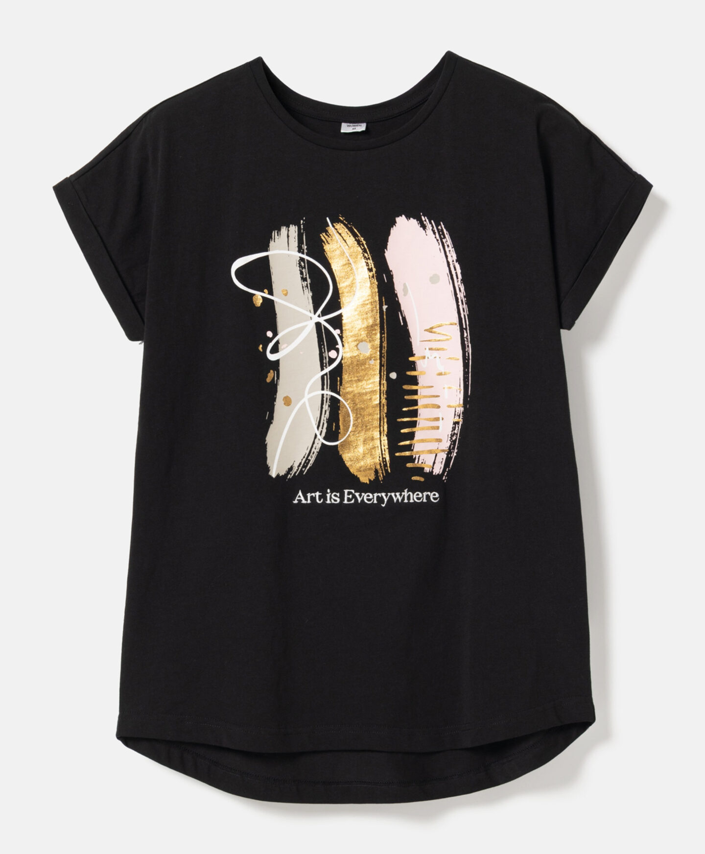 Scegli il comfort senza rinunciare allo stile con questa T-shirt nera da donna in 100% cotone. Le maniche corte e il taglio morbido garantiscono libertà di movimento e la rendono perfetta per le giornate estive o per un look casual e rilassato. La grafica audace sul davanti aggiunge un tocco di personalità, rendendola ideale per chi ama distinguersi con semplicità.