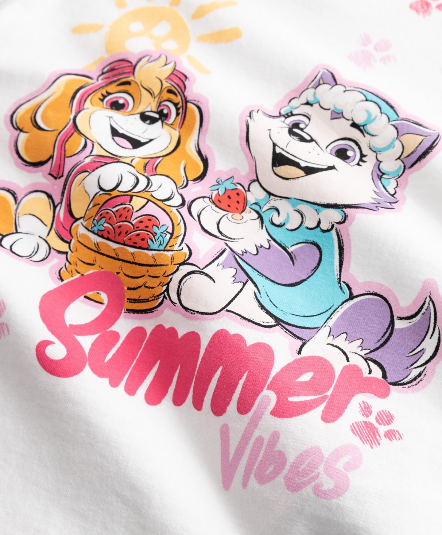Porta l’allegria di Paw Patrol nel guardaroba della tua piccola con questa t-shirt bianca in 100% cotone. Morbida e delicata sulla pelle, garantisce comfort e traspirabilità anche nelle giornate più calde. Il simpatico disegno sul davanti renderà questa maglietta il suo capo preferito, perfetta da abbinare a jeans, leggings o gonnine per un look sempre alla moda e pieno di energia!