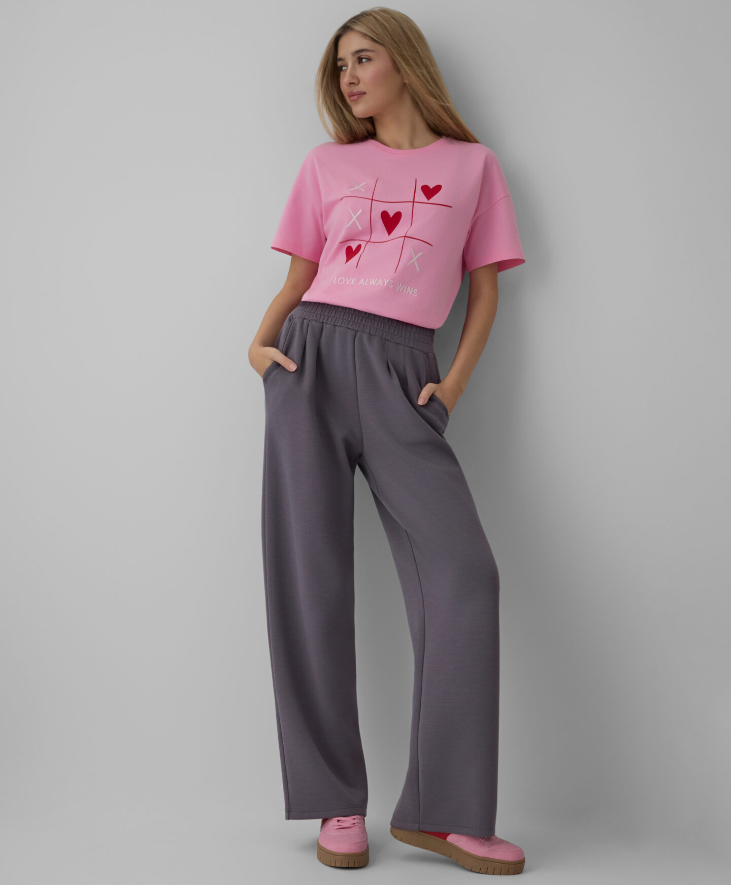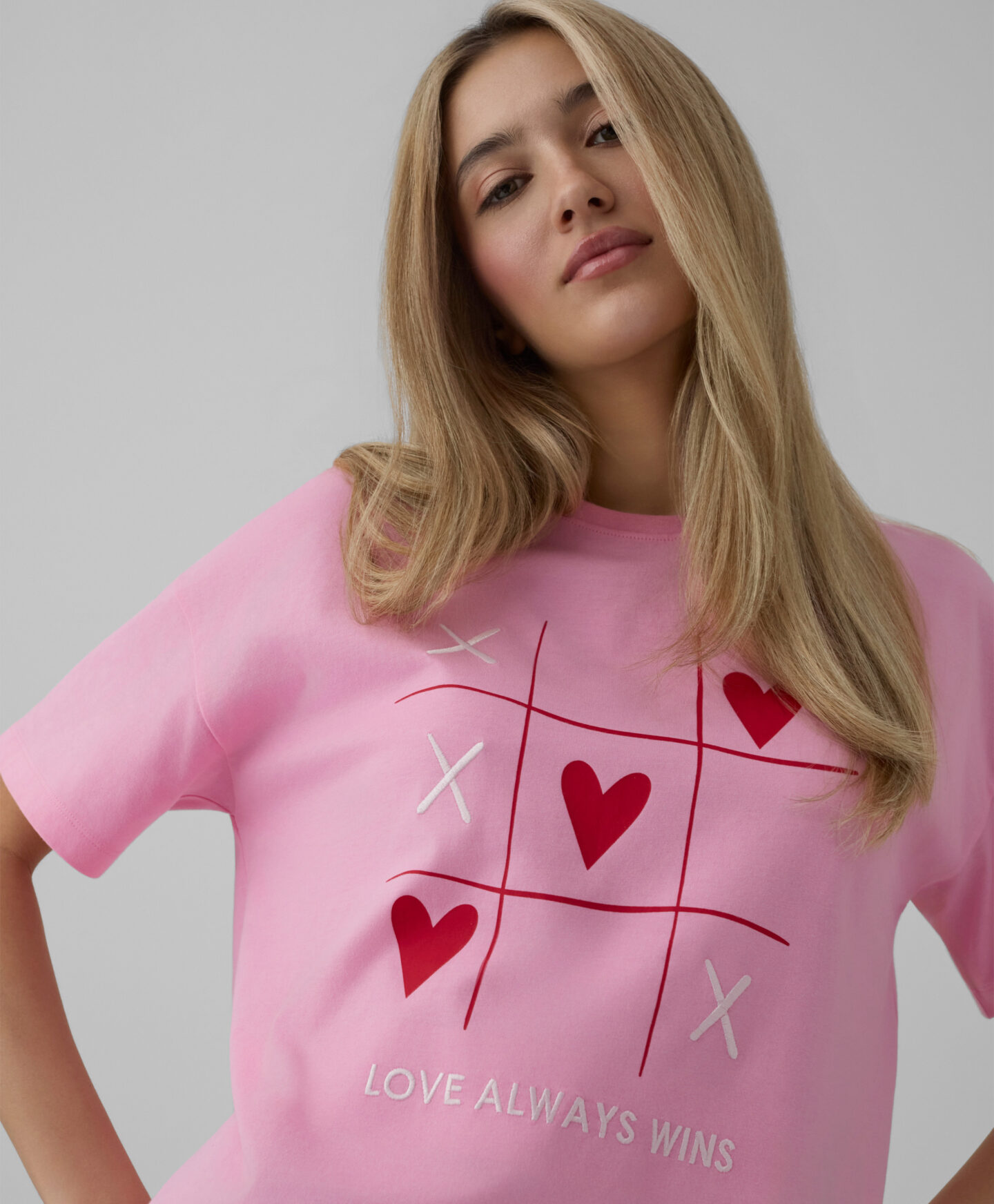 T-shirt rosa con cuori da donna