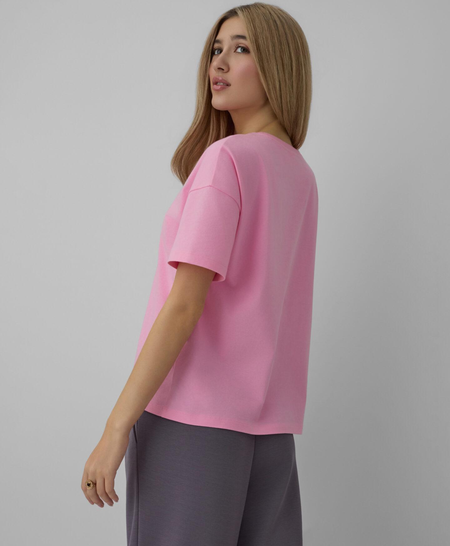 Aggiungi un tocco di romanticismo al tuo guardaroba con questa T-shirt rosa da donna, realizzata in 100% cotone e impreziosita da un delicato motivo a cuori. Morbida e traspirante, garantisce comfort per tutto il giorno, rendendola perfetta per le tue giornate più dinamiche. Questa maglia è un capo versatile che non può mancare nel tuo guardaroba!