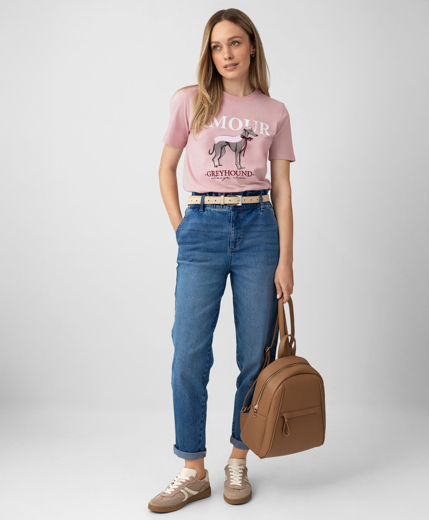 Scopri la perfetta fusione tra comfort e stile con questa T-shirt rosa da donna in 100% cotone. La morbidezza del tessuto assicura una sensazione di benessere per tutto il giorno, mentre la stampa alla moda aggiunge un tocco di personalità al tuo look. Ideale per completare i tuoi outfit casual, questa maglietta è disponibile nelle taglie dalla S alla XXL. Aggiungila al tuo guardaroba per avere un capo versatile e sempre attuale!
