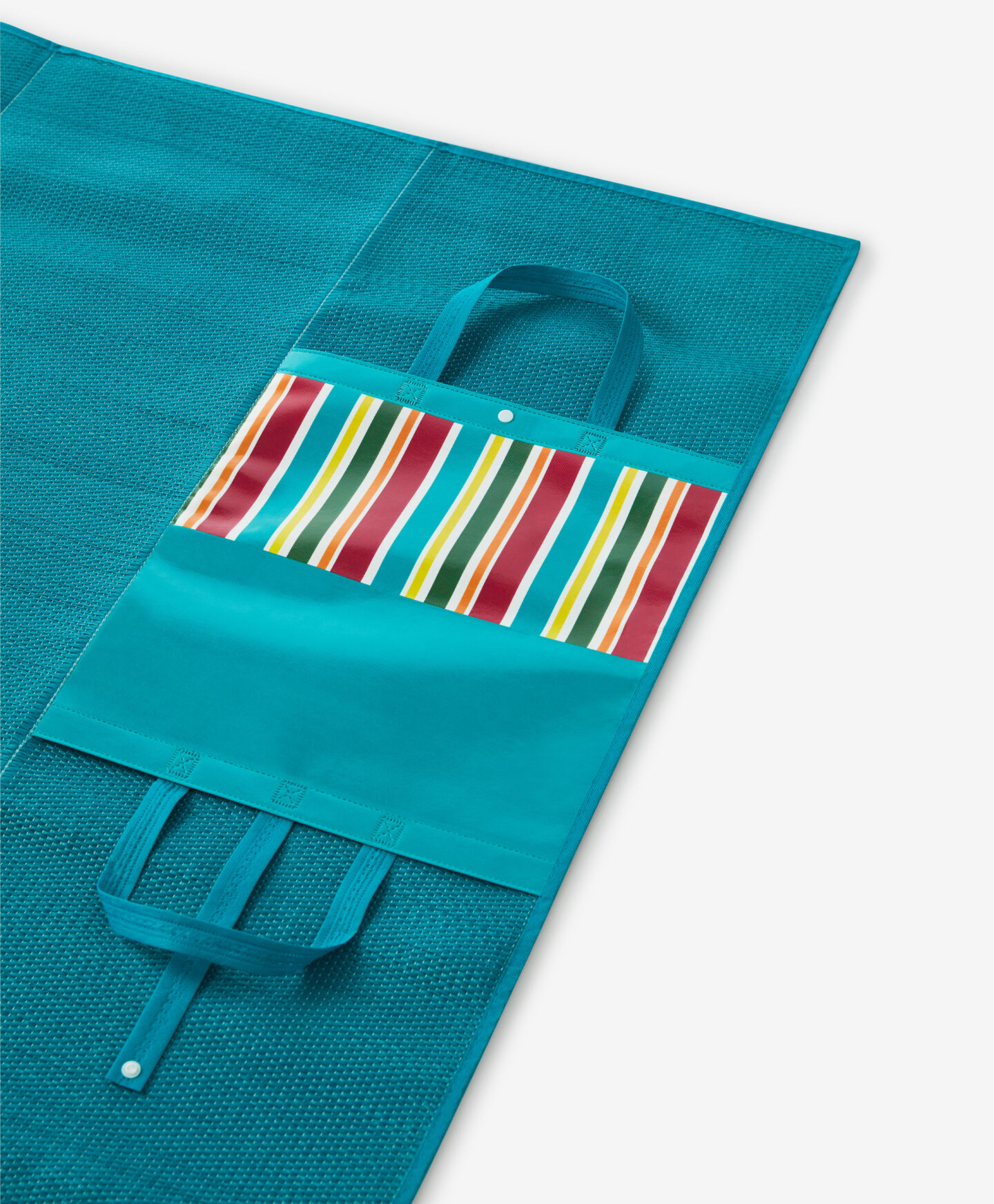 Trasforma le tue giornate al mare con questo elegante tappetino da spiaggia azzurro. Realizzato in materiali resistenti e impermeabili, offre il massimo comfort durante le tue sessioni di relax sotto il sole. Grazie alla sua struttura leggera e ai pratici manici è facilissimo da piegare e trasportare. Con un design accattivante, questo tappetino garantirà comodità e stile durante le tue vacanze.