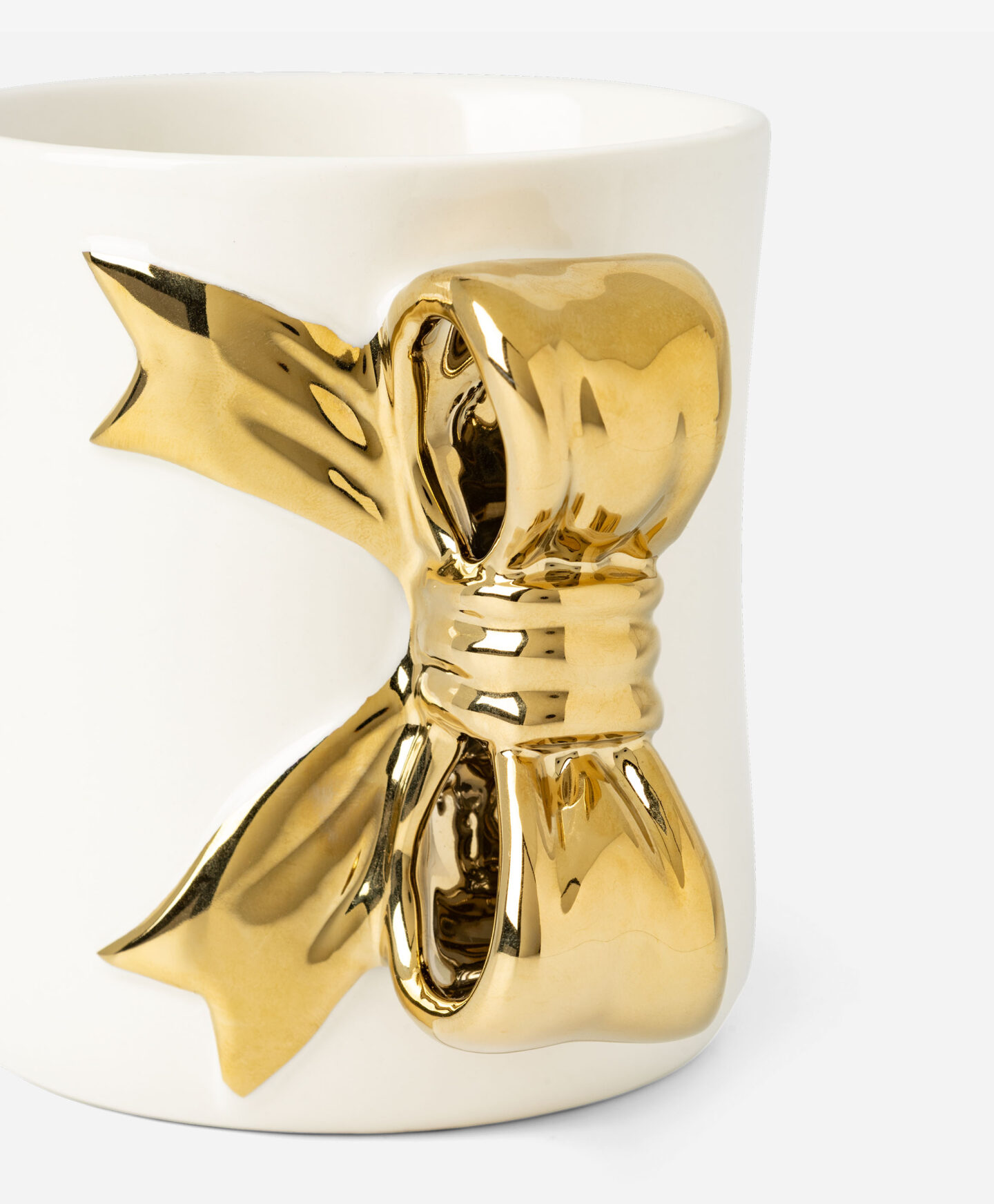 Tazza bianca con fiocco dorato