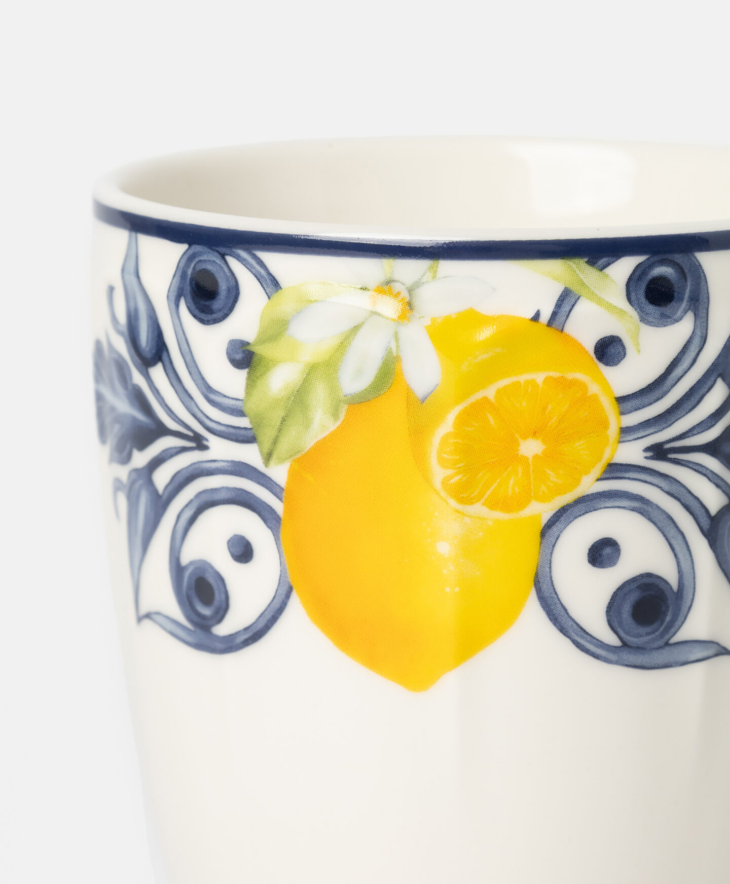 Tazza bianca e blu con limoni