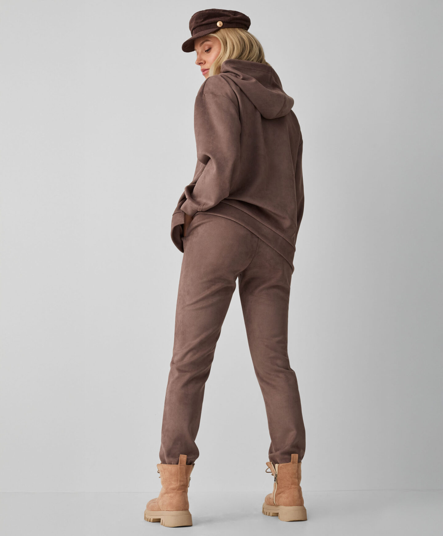 Tuta marrone scamosciata da donna