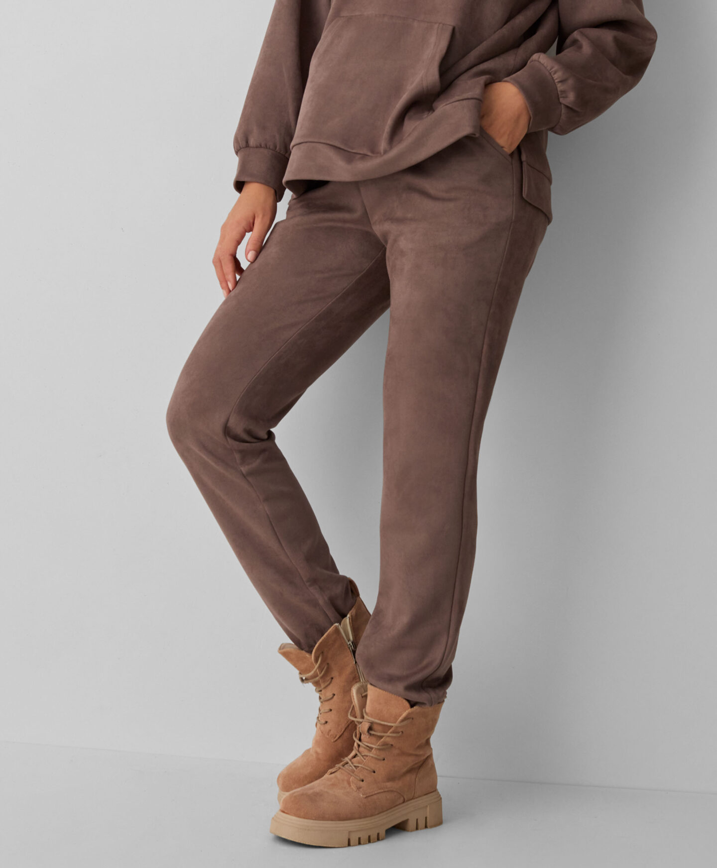 Impreziosisci il tuo guardaroba autunnale con questi pantaloni della tuta marroni scamosciati da donna, morbidi al tatto e incredibilmente confortevoli per le giornate più fredde. Pratici e versatili, sono ideali per una passeggiata nella natura o per un caffè in città, donandoti uno stile raffinato senza rinunciare al comfort. Disponibile in 2 colori, abbinali alla felpa coordinata per un look comodo e perfettamente autunnale.