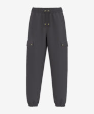 Scopri questi pantaloni della tuta neri da donna, un vero must-have per chi cerca comfort e stile. Realizzati in tessuto spesso, offrono elasticità, morbidezza e una finitura liscia che li rende ideali per passeggiate o giri in bicicletta. Il taglio comodo garantisce libertà di movimento, mentre la vita elasticizzata dotata di pratici laccetti assicura una vestibilità perfetta. Le eleganti patte decorative sui lati aggiungono un tocco di carattere al design di questi pantaloni. Completa il look con la felpa coordinata della stessa collezione. Questi pantaloni sono disponibili nelle taglie dalla S alla XXL e si adattano a ogni silhouette.