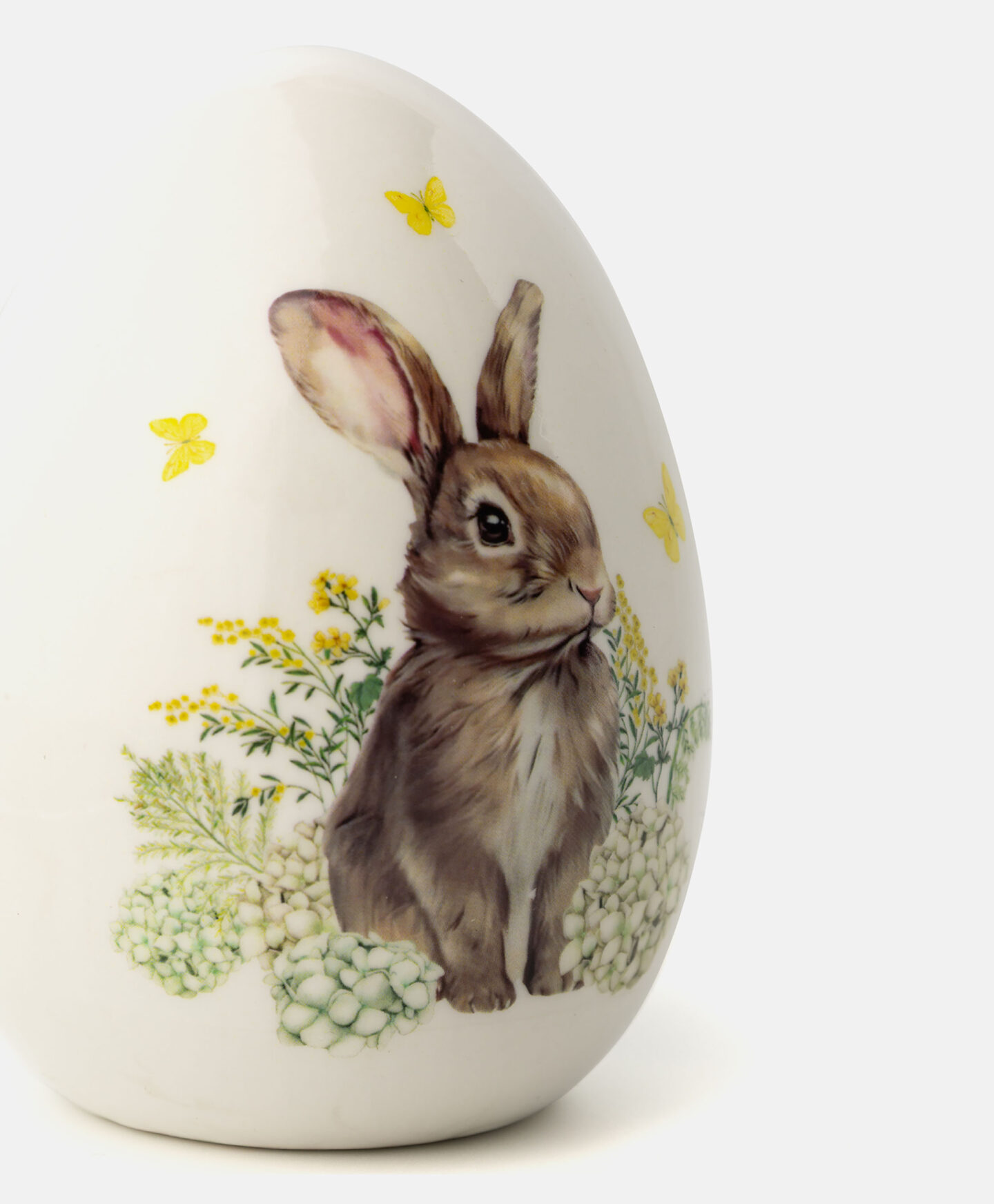 Aggiungi un tocco di eleganza alla tua casa con questo uovo decorativo arricchito con un coniglietto. La texture unica gli conferisce un aspetto raffinato e minimalista, rendendolo perfetto per arricchire qualsiasi stile d’arredo. Ideale come centrotavola primaverile o come dettaglio chic per arricchire una mensola del soggiorno, questo uovo decorativo è un complemento d’arredo che unisce bellezza e delicatezza.