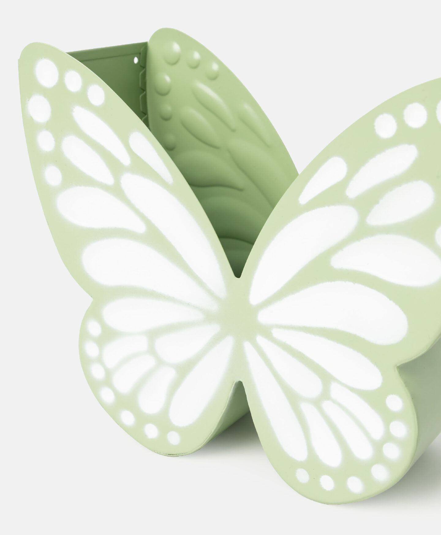 Aggiungi un tocco primaverile alla tua casa con questo vaso metallico verde a forma di farfalla, perfetto per coltivare piccole piante, erbe aromatiche o fiori. Il suo design elegante si abbina a qualsiasi arredamento, sia in casa che sul balcone o terrazzo. Realizzato in metallo resistente e disponibile in 3 colori, questo vaso non solo protegge le tue piante, ma aggiunge anche un dettaglio decorativo unico e raffinato al tuo spazio verde.