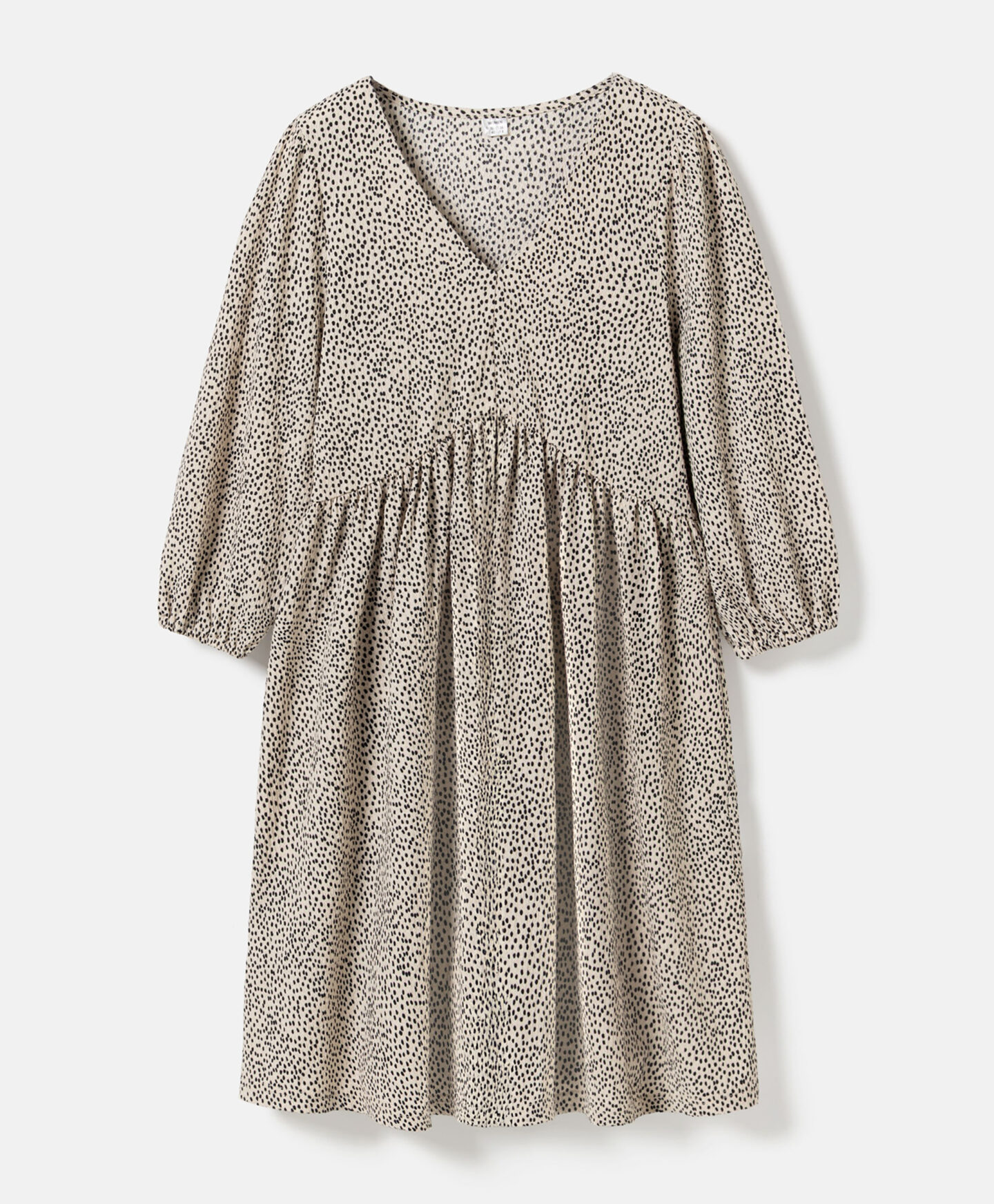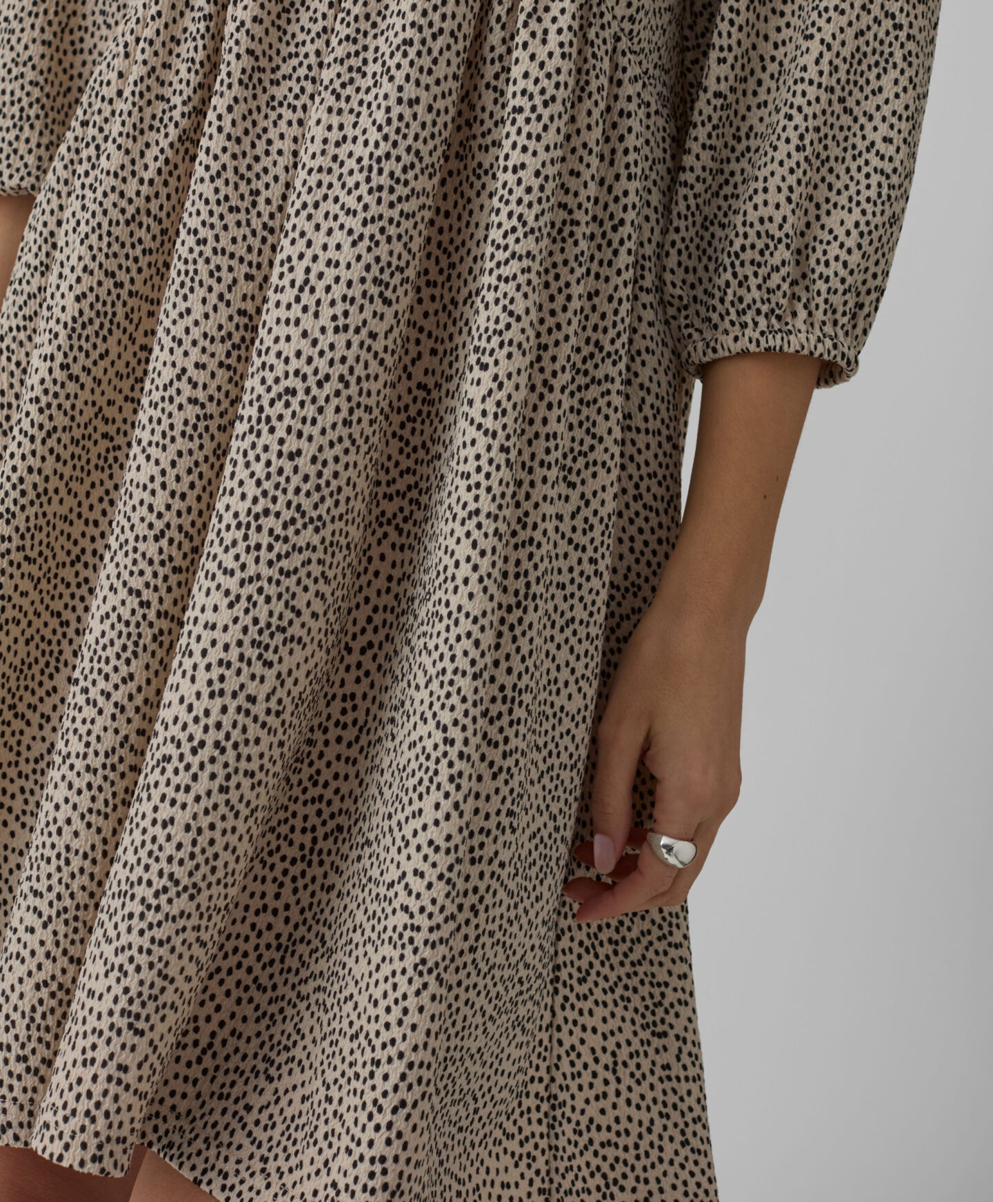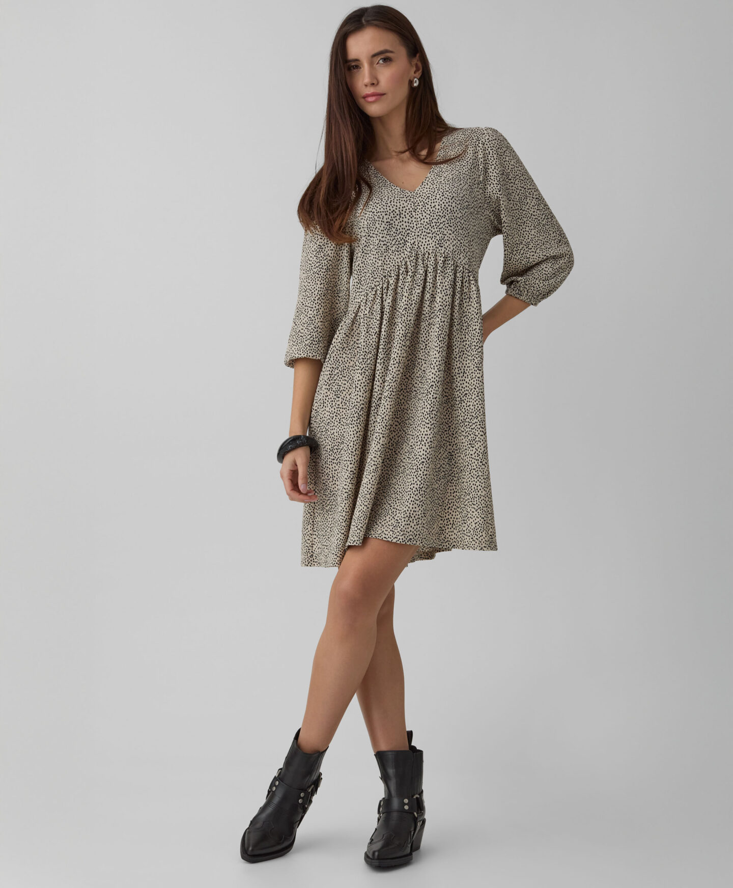 Lasciati conquistare dalla versatilità di questo vestito morbido beige da donna per sfoggiare un look unico e pieno di carattere. Le pieghe irregolari donano volume e movimento, modellando la silhouette con eleganza senza rinunciare al comfort. Il morbido tessuto avvolge delicatamente, mentre la scollatura a V regala un tocco di leggerezza. Indossalo con sneakers per un outfit casual o con ballerine e stivali per un look più ricercato!