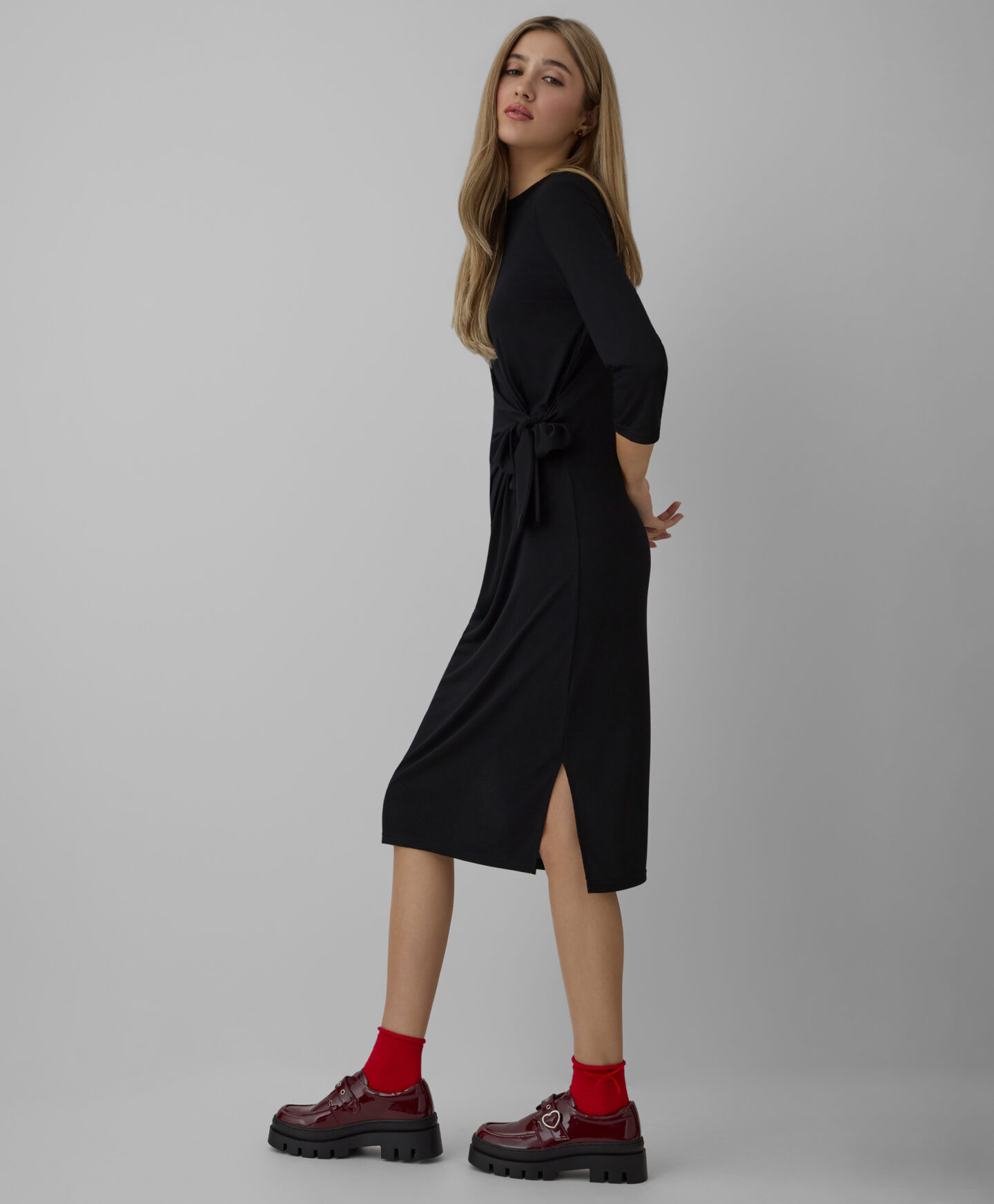 Vestito nero con nodo da donna