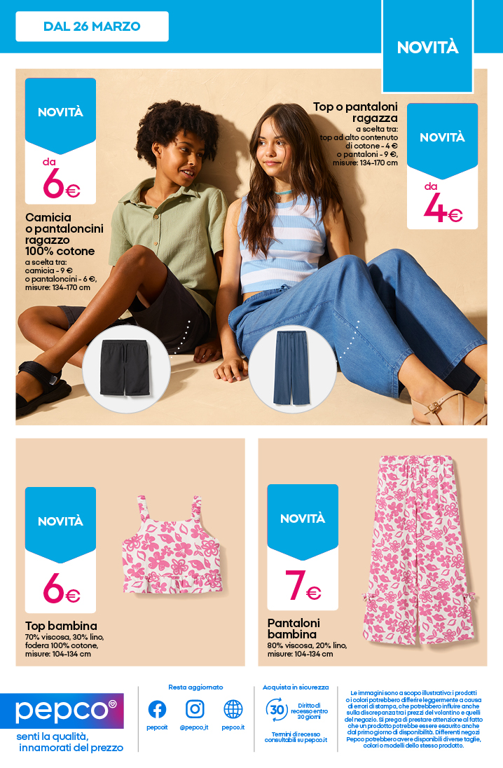 PEPCO Poland Sp. Z o. o. utilizza Cookie (o altri strumenti di tracciamento) tecnici, analitici e di profilazione, anche di terze parti, partner selezionati, per assicurare il corretto funzionamento del sito, migliorarne la funzionalità e offrire agli utenti un’esperienza di navigazione personalizzata, per finalità statistiche e rilevare l’audience del sito nonché, previo consenso, per finalità pubblicitarie e di profilazione. Per maggiori informazioni su come utilizziamo i Cookie o per modificare le tue preferenze (incluso revocare il consenso, se prestato), puoi consultare la Cookie policy. Per maggiori informazioni su come trattiamo i dati personali anche raccolti tramite i Cookie (inclusi gli eventuali altri soggetti destinatari dei dati, i tempi di conservazione dei dati e le modalità per l’esercizio dei tuoi diritti), puoi consultare l’informativa privacy.